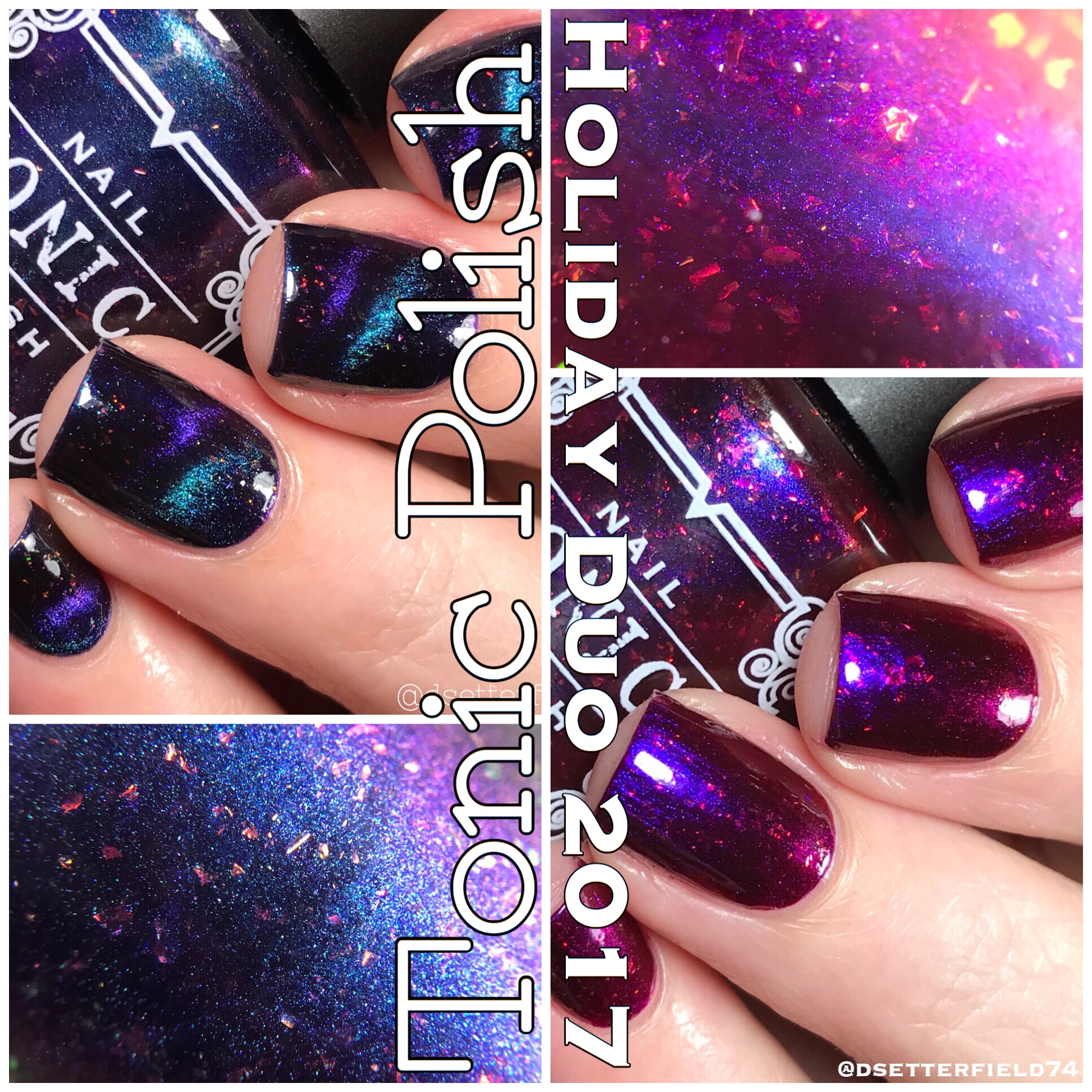 This is the Holiday Duo, two luscious shades that I swear you’d eat if they weren’t so poison-y. Also the judgy eyes – they are always lurking. So while we sit here being normal and boring and whatnot, let’s look at closeups. I mean, we want these polishes on BOTH hands, just so you know.