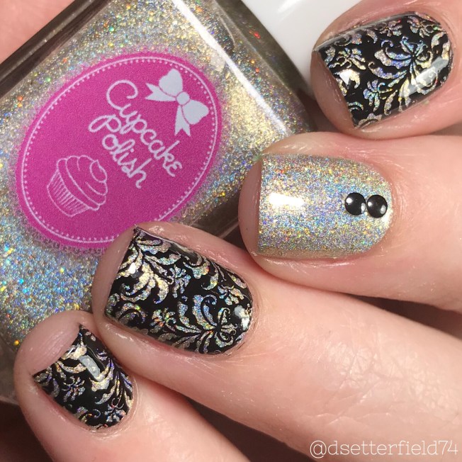 Used the Lina You’re a Damasque 01 plate for this one, and while it’s no great shakes, I still love it pretty hardcore. Sometimes easy is better than a stamping all the things sort of situation, which is my natural inclination about 97.7468% of the time. Plus doing nail art with your eyes open helps too.