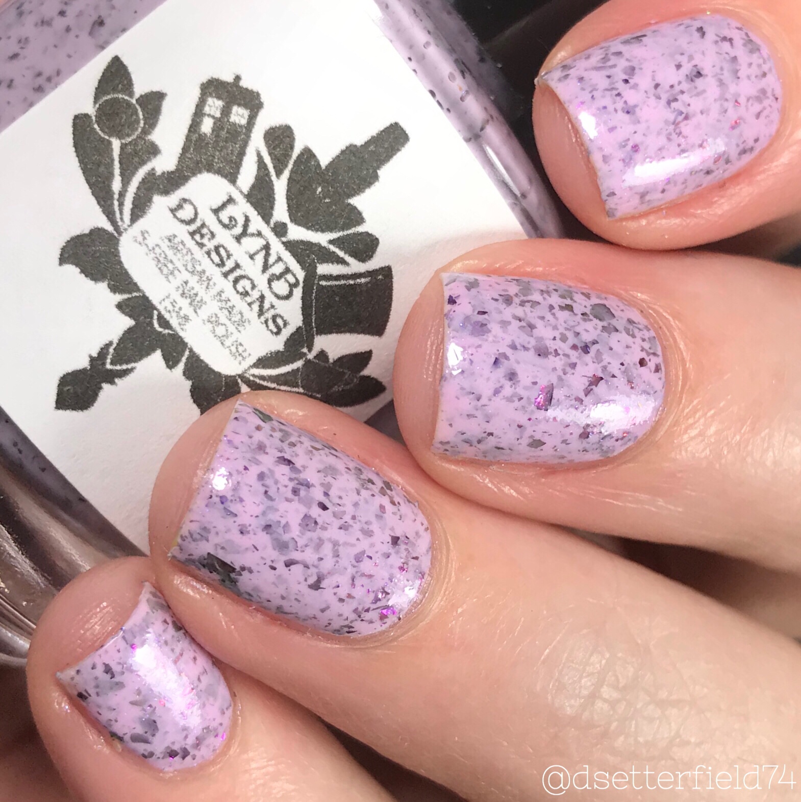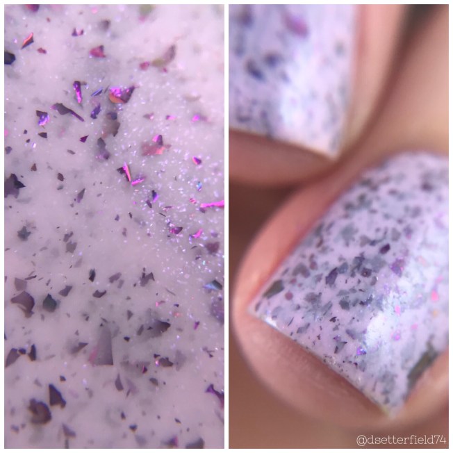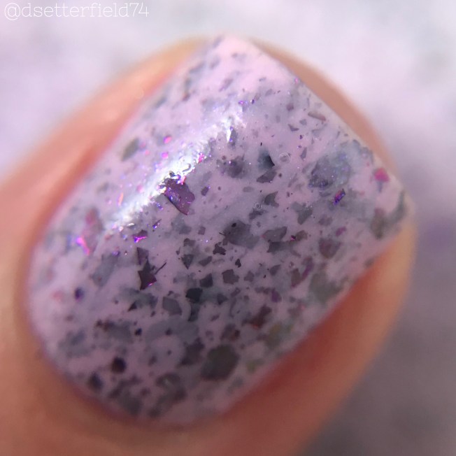 DESCRIPTION: A pale pinky lavender base with pink/purple/blue shifting shimmer and purple/blue/red/gold ultra chameleon chrome flakies