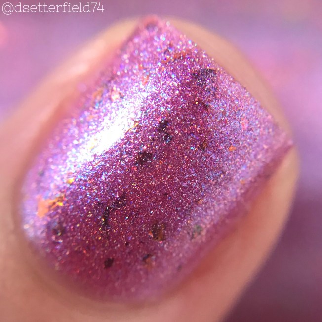 DESCRIPTION: A pink holographic loaded with red to copper ultra chrome chameleon flakies and aqua shimmer