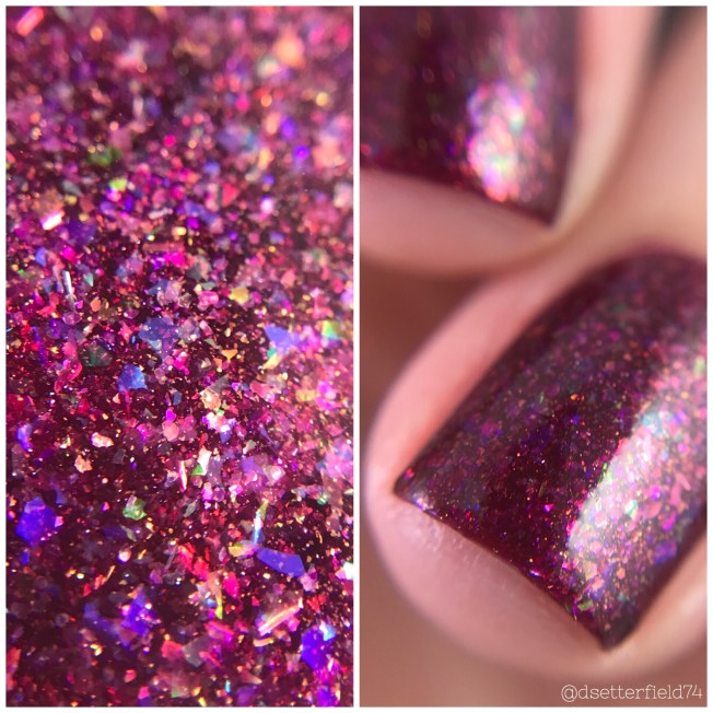 DESCRIPTION: A burgundy jelly packed with multicolored iridescent flakies and gold shimmer