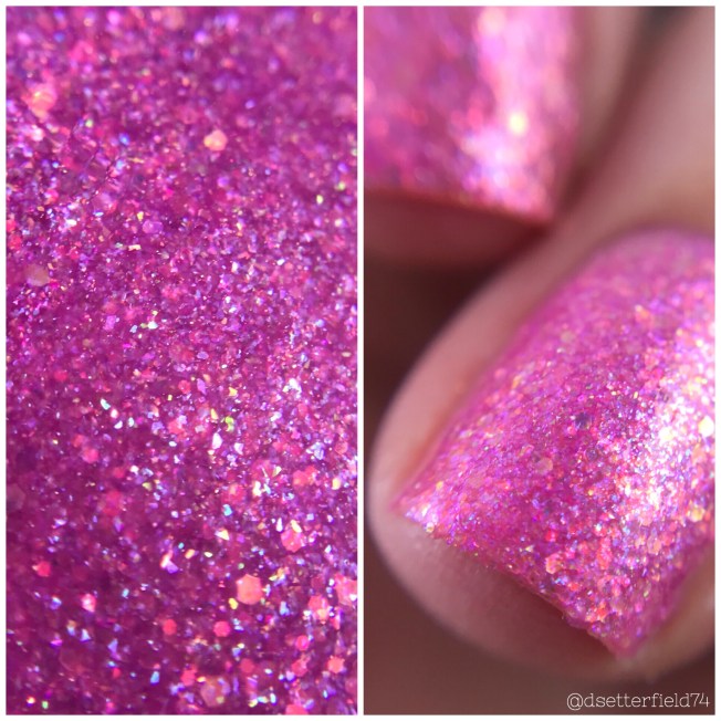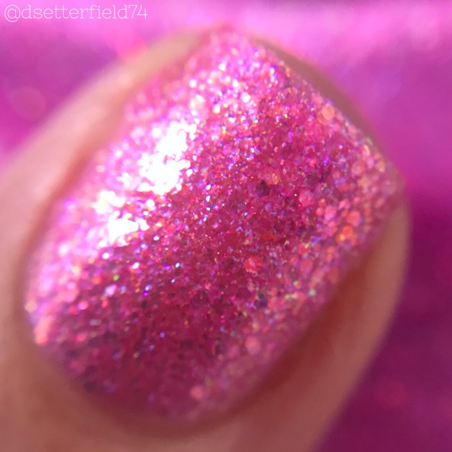 DESCRIPTION: A pink jelly packed with red to green shifting iridescent glitters and a hint of blue shimmer