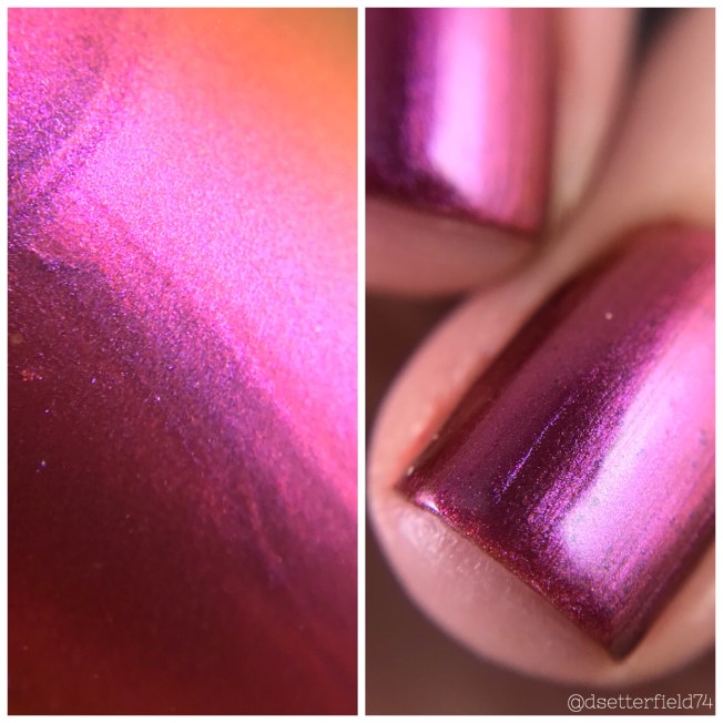 This color surprised me.  In the bottle it was pink and orange.  That’s it.  But then under the lamps, purple came out front and center and helllloooooo … DEAD.  Seriously, this one ended up being so much more beautiful than expected.  Cue the drool buckets!  The tongue is officially lolling about outside my body.