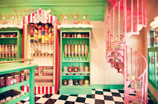 Liz was inspired by the adorable Honeydukes candy shop from the Harry Potter movies.  This color palette is all that is right with the world: