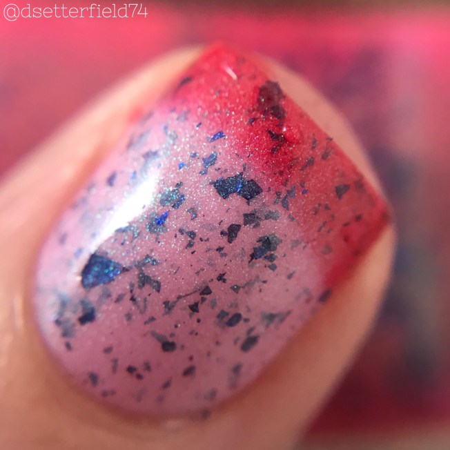 DESCRIPTION: A red to pale pink thermal with turquoise shimmer and blue chrome flakies
