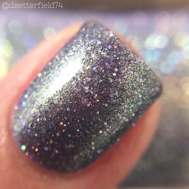 DESCRIPTION: A grey leaning purple with gold/green shifting shimmer and silver holographic microglitter