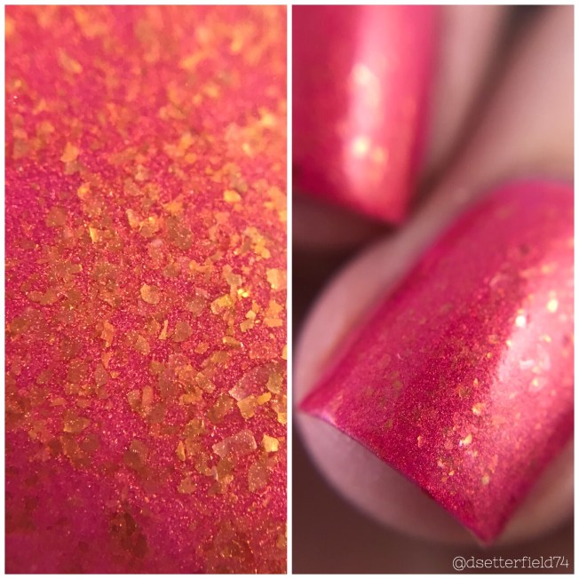 DESCRIPTION: A bright pink with gold shimmer and gold flakies