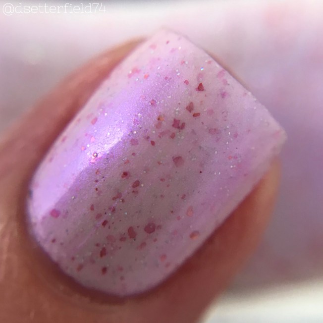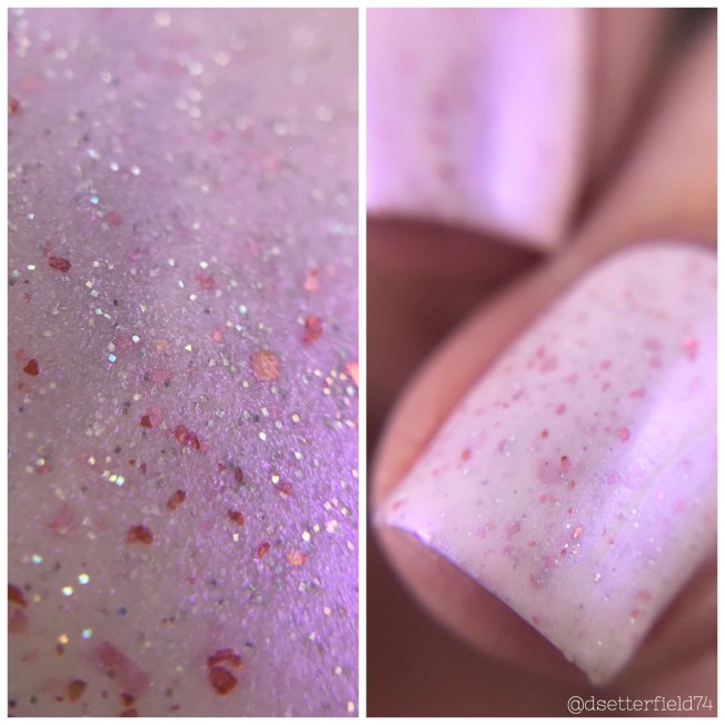 DESCRIPTION: A very pale pink with strong violet shimmer, silver microglitter and copper flakies