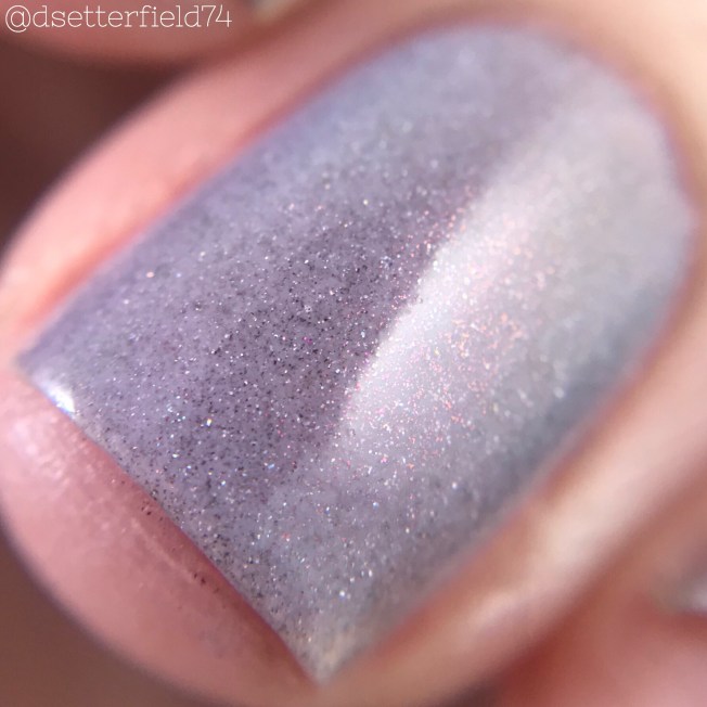 DESCRIPTION: A muted lavender base with subtle pink/bronze/gold multichrome shift and a touch of scattered holo
