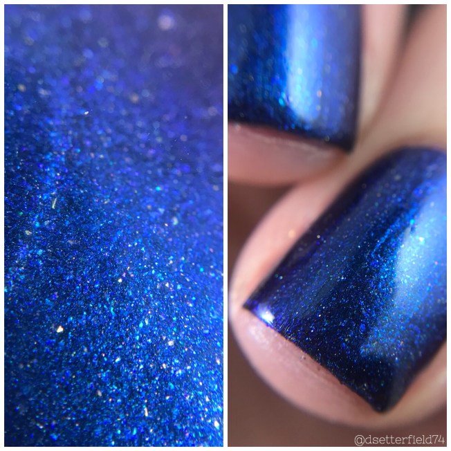 DESCRIPTION: A deep sapphire blue base with subtle blue/purple multichrome shift, gold micro flakies and a touch of scattered holo