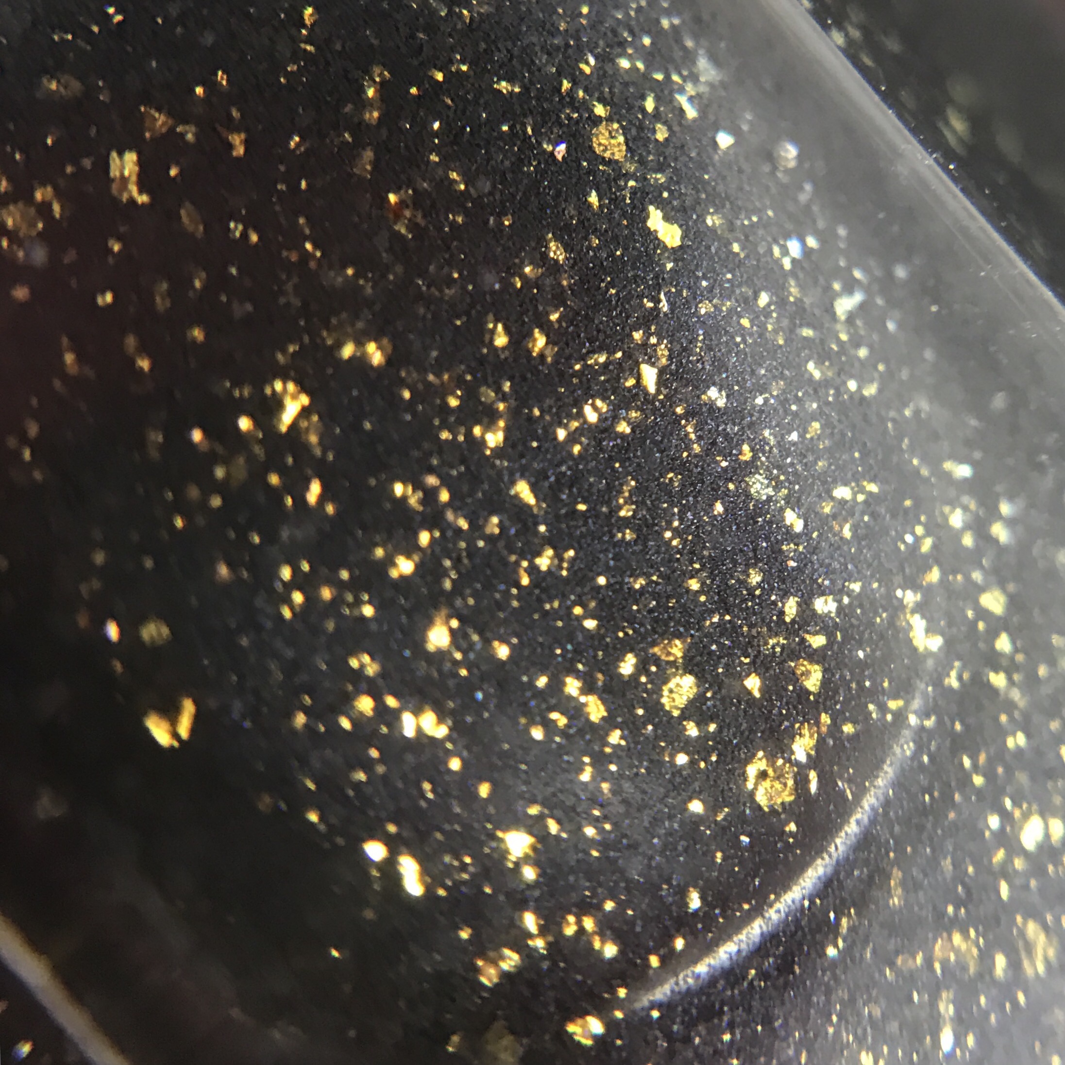 DESCRIPTION: A blackened purple with silver, gold and copper galaxy glitter, rainbow micro shreds, purple shimmer and a rainbow of crystal flakies