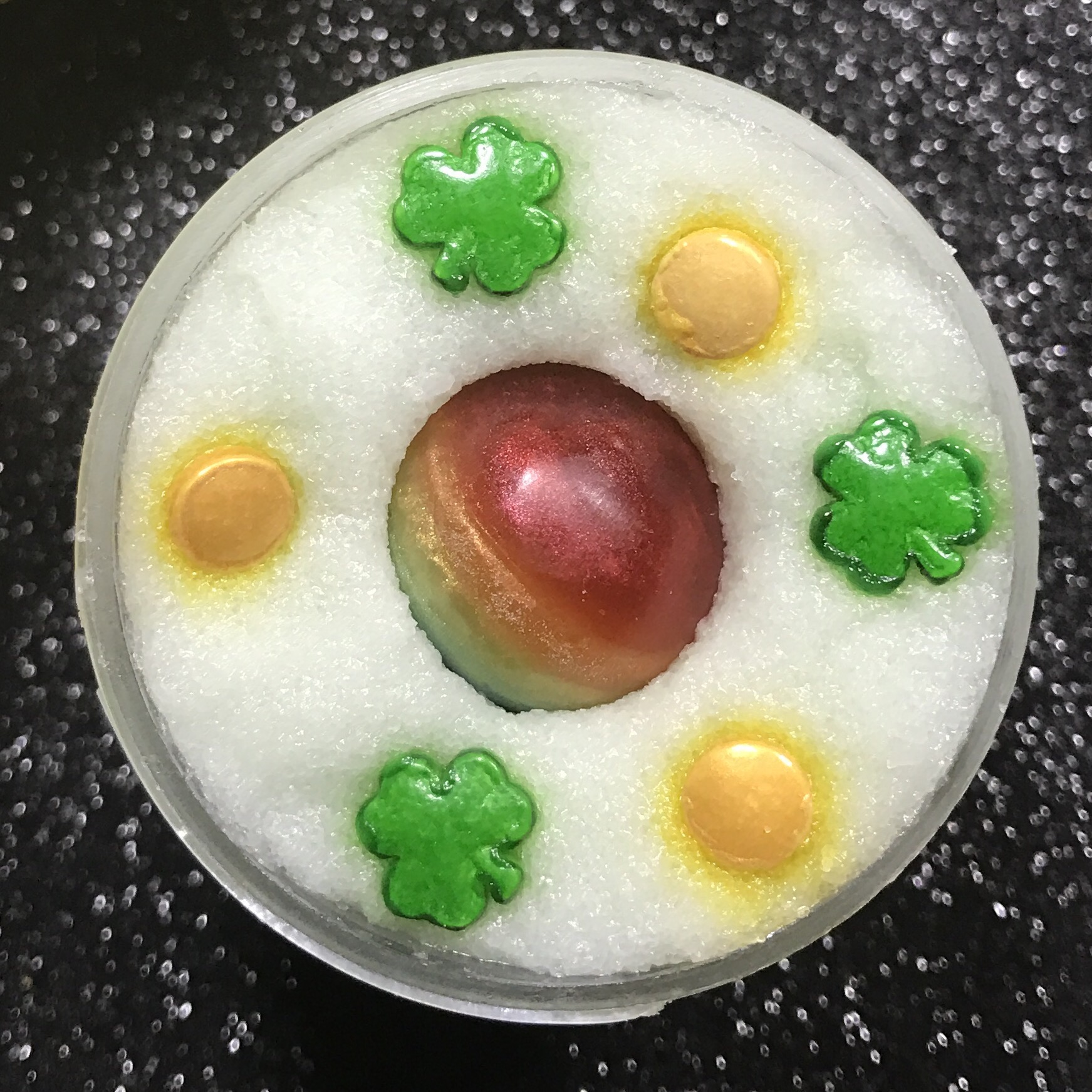 DESCRIPTION: A beautifully decorated wax melt with sparkle and detail almost too pretty too melt