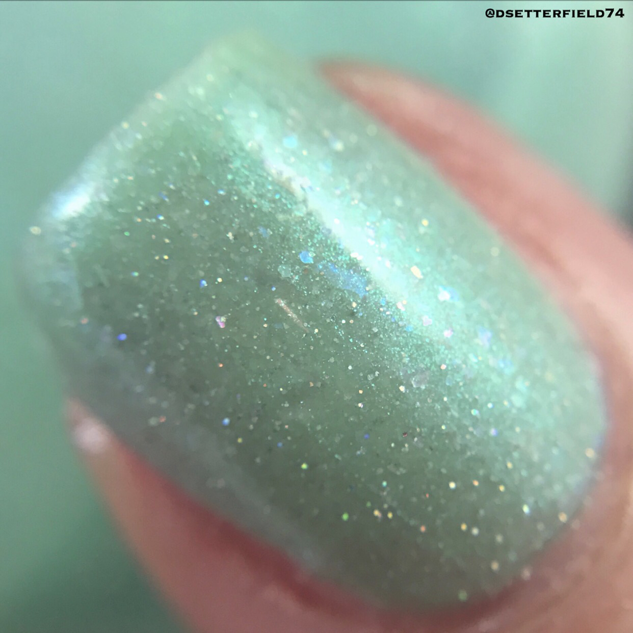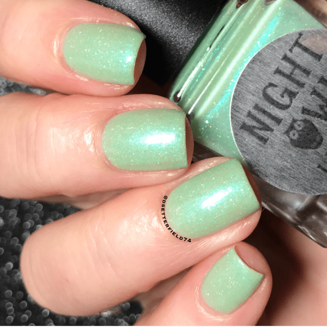 This is Survivor, a shimmery lilac pearl with a sea foam green undertone. I’m seriously about to fall apart cuz the noodle legs are everywhere. The fact I’m still upright is perseverance at superhuman levels. The shimmer got me. It got me good, guys. And the formula was such a dang dream. Nice and fluid, all glide-y and smooth. I about went to Polish Mountain with it, but I gave up after three coats. I’m not good at goals, let’s just say. However, it would be a good one if the mood ever strikes. And you have nothing to do for the next 18 years.