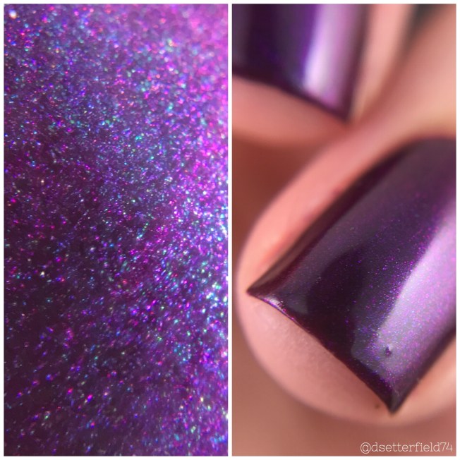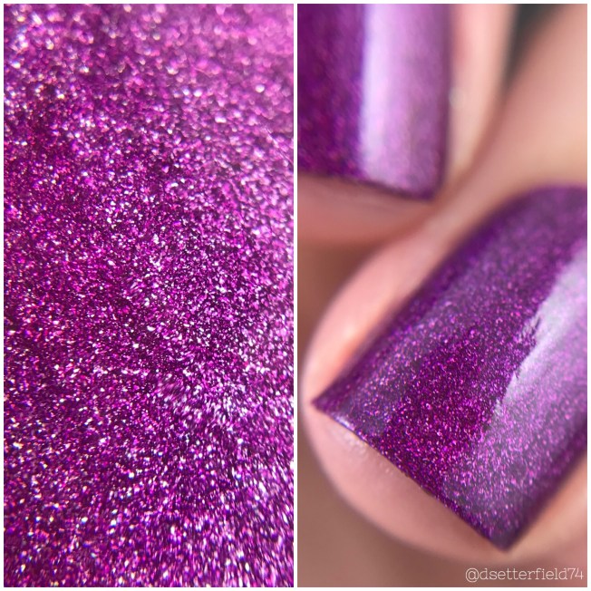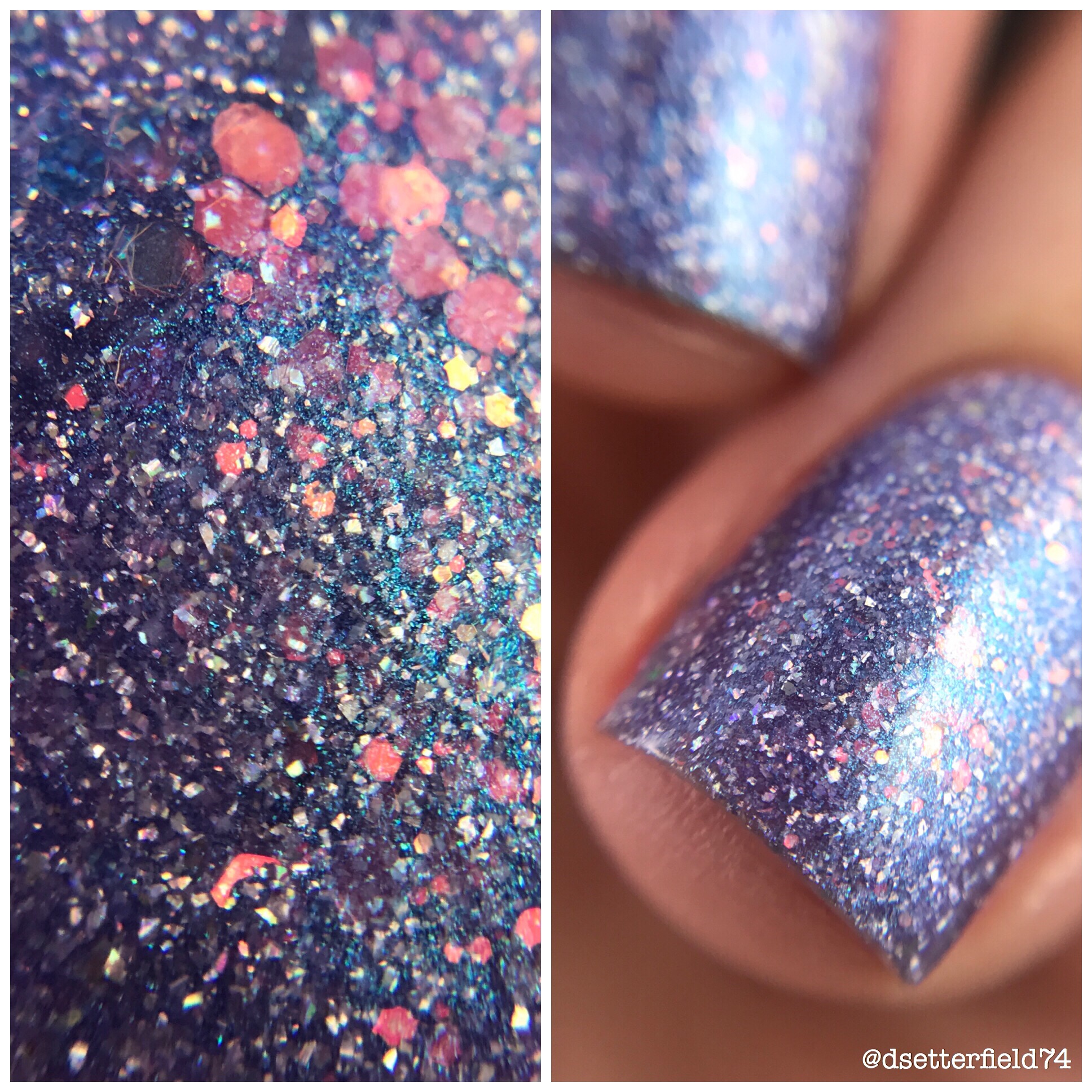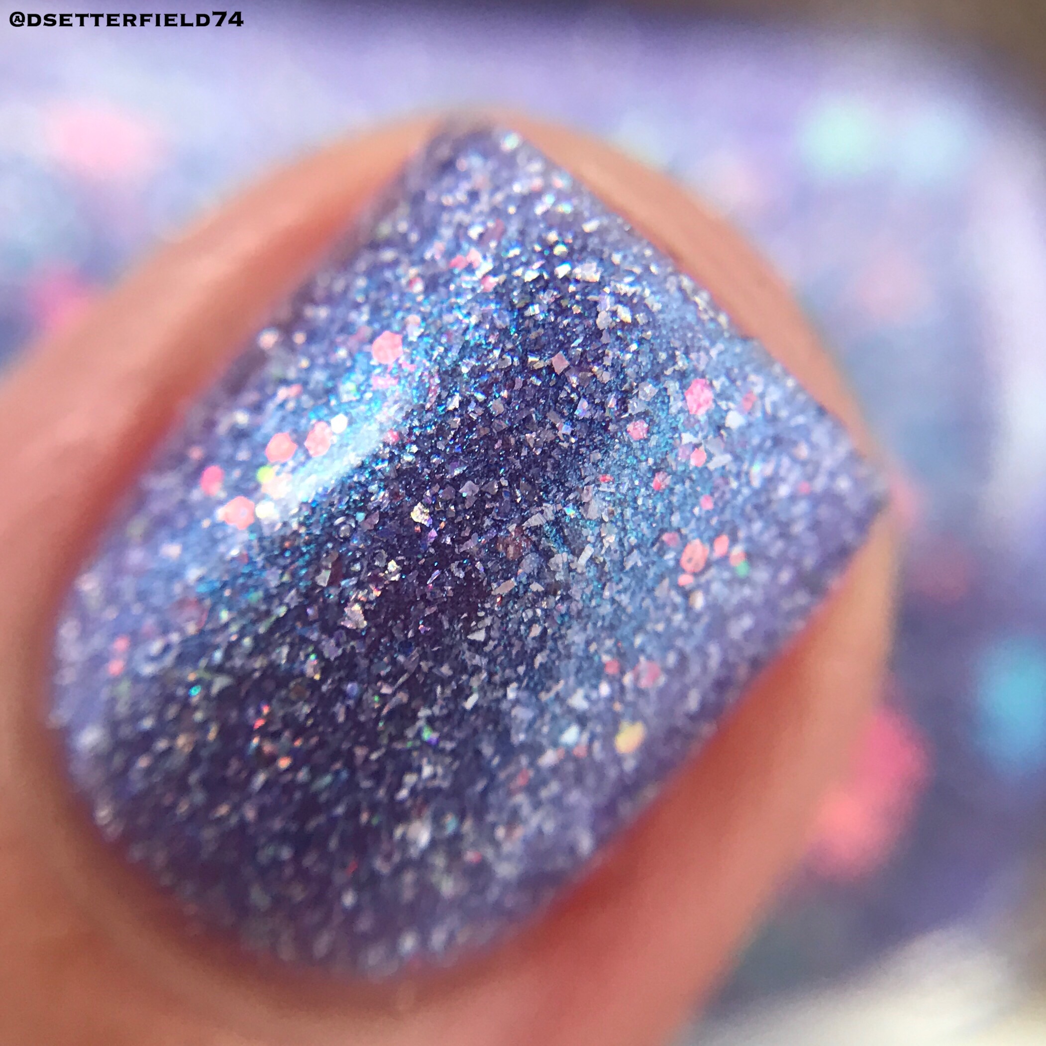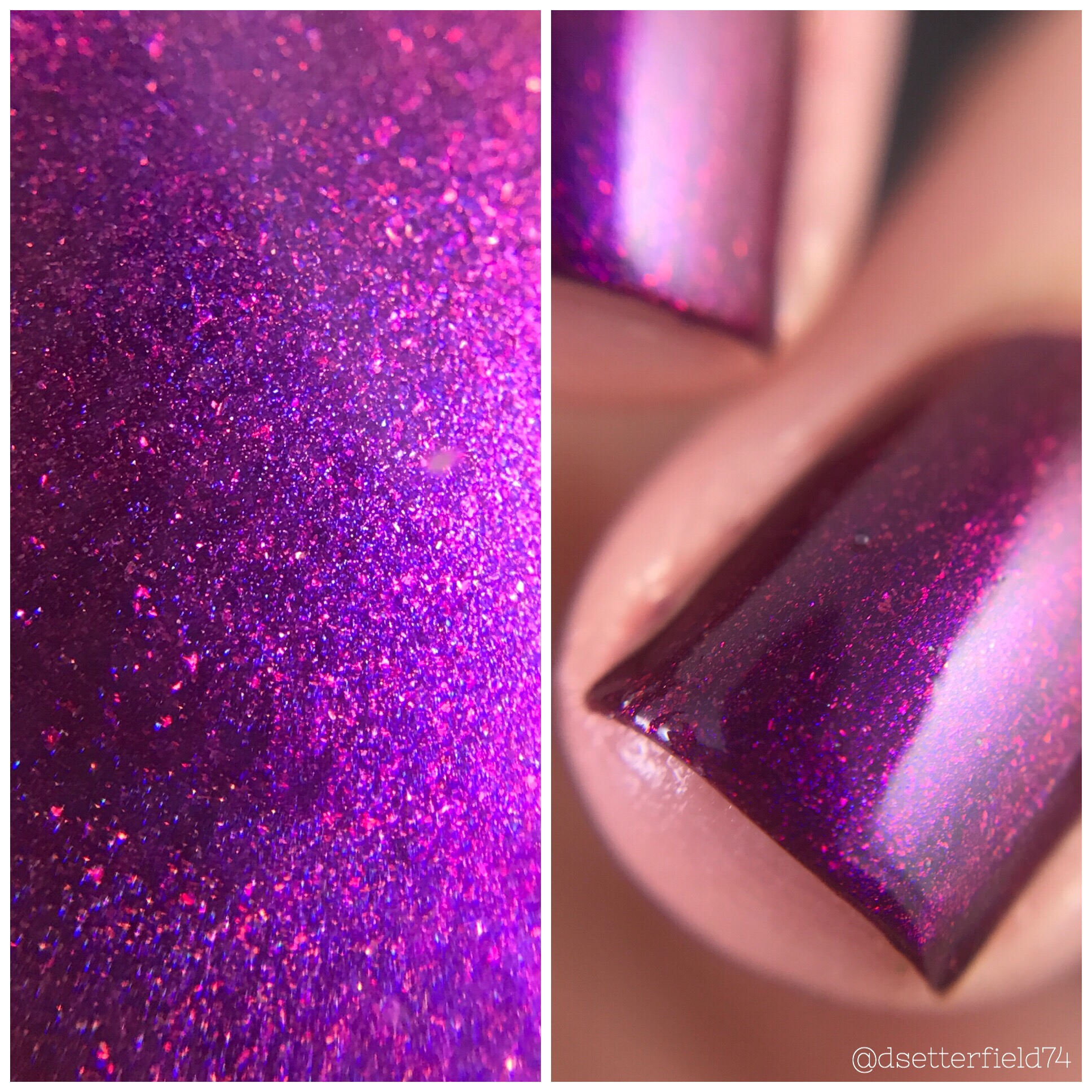 DESCRIPTION: A bright purple with iridescent shimmer, silver holographic shreds and purple/blue shifting microflakies