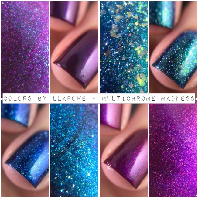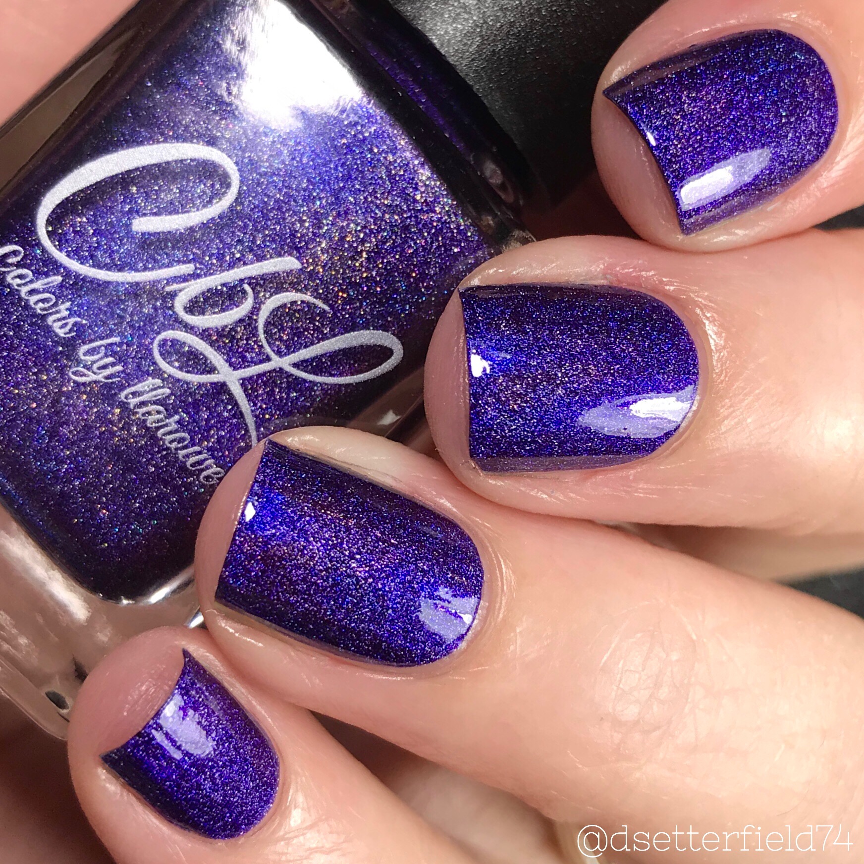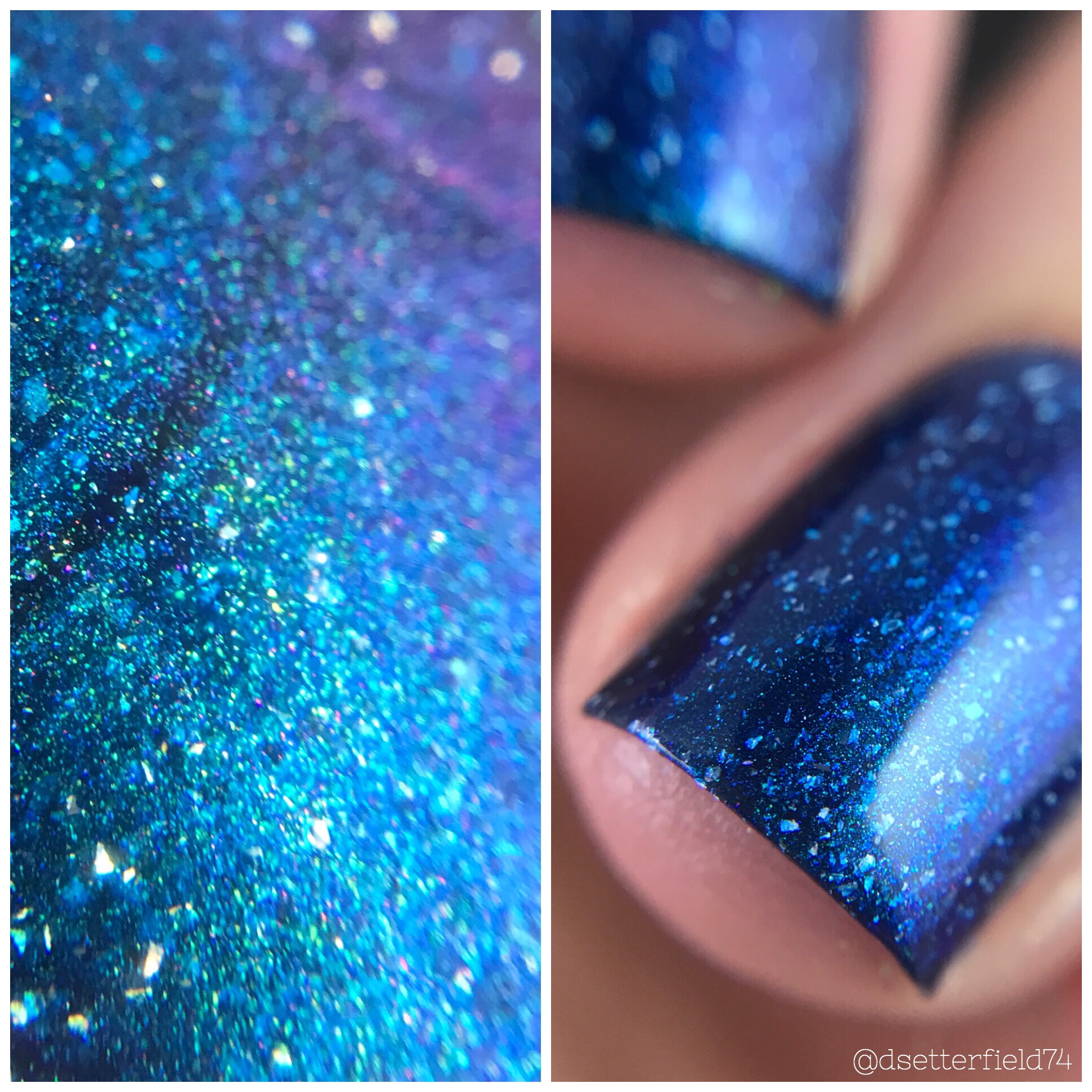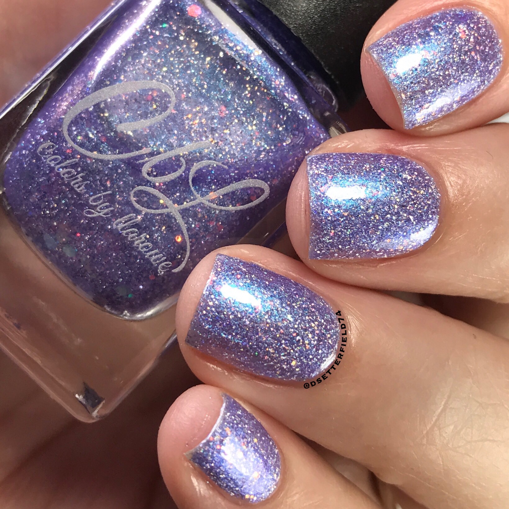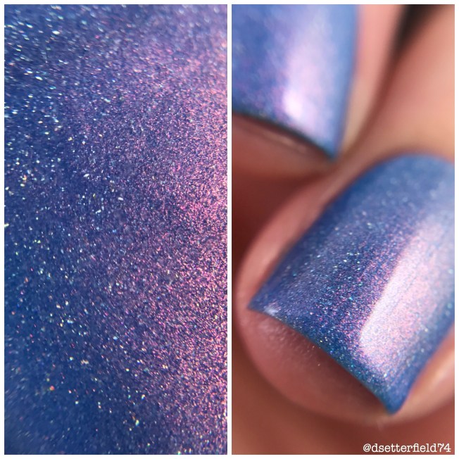 DESCRIPTION: A bright purple with iridescent shimmer, silver holographic shreds and purple/blue shifting microflakies