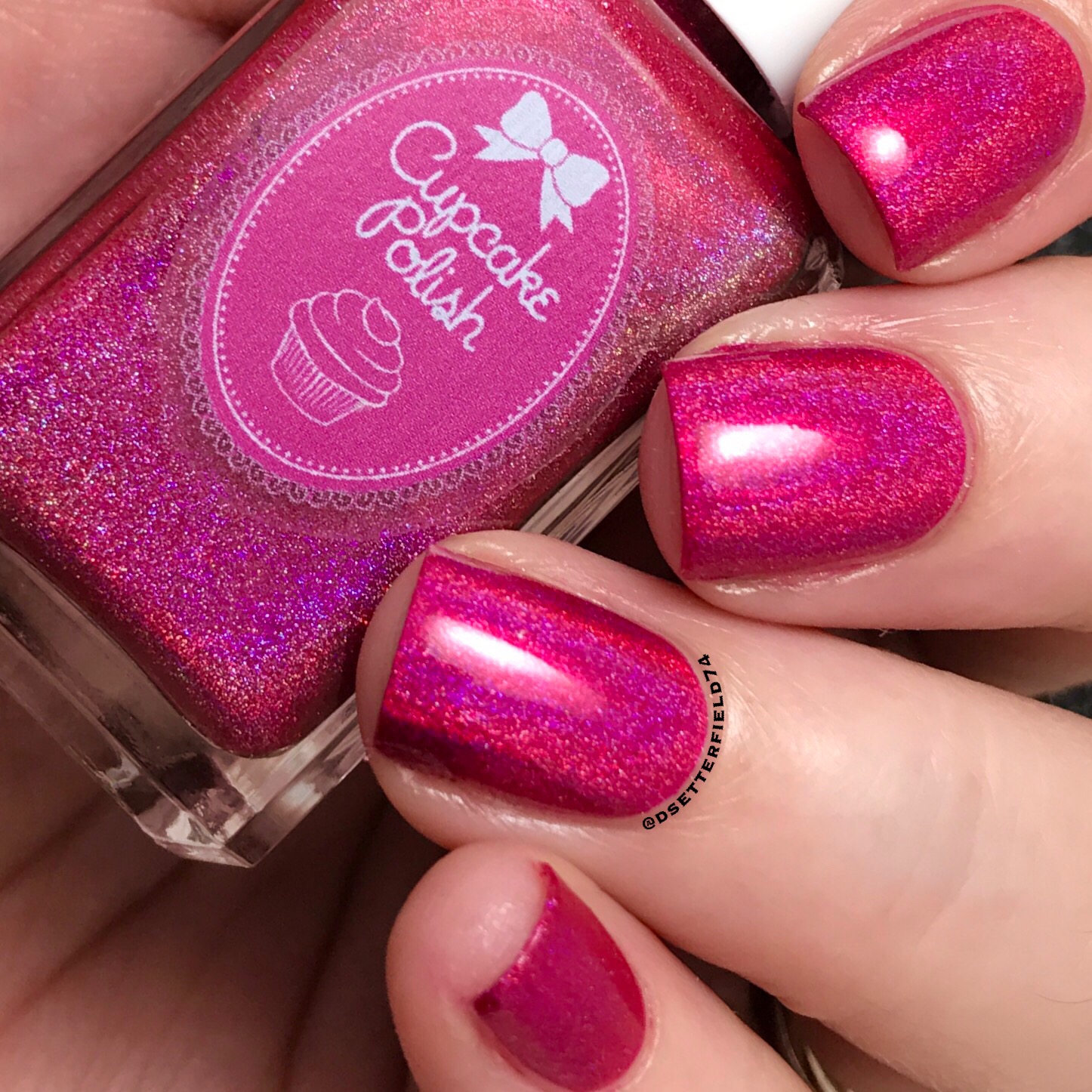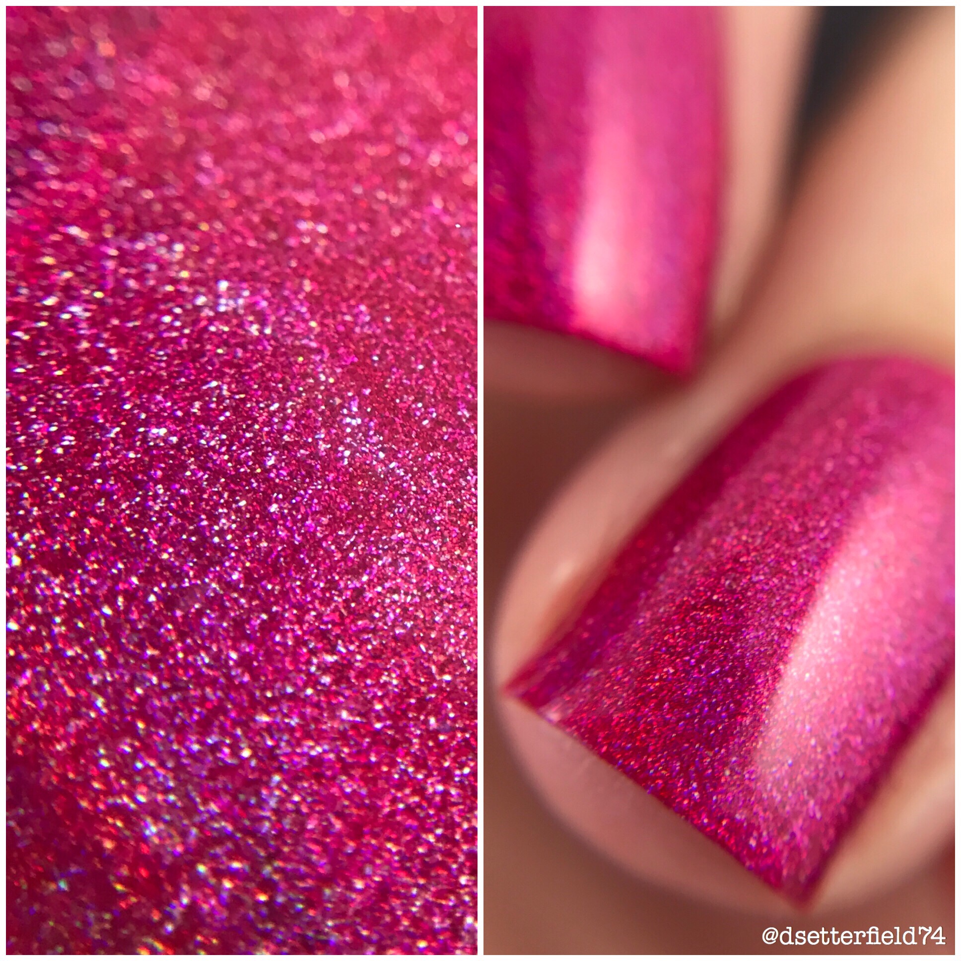 DESCRIPTION: A pink base with light sprinkle of holo and shifty green to pink shimmer