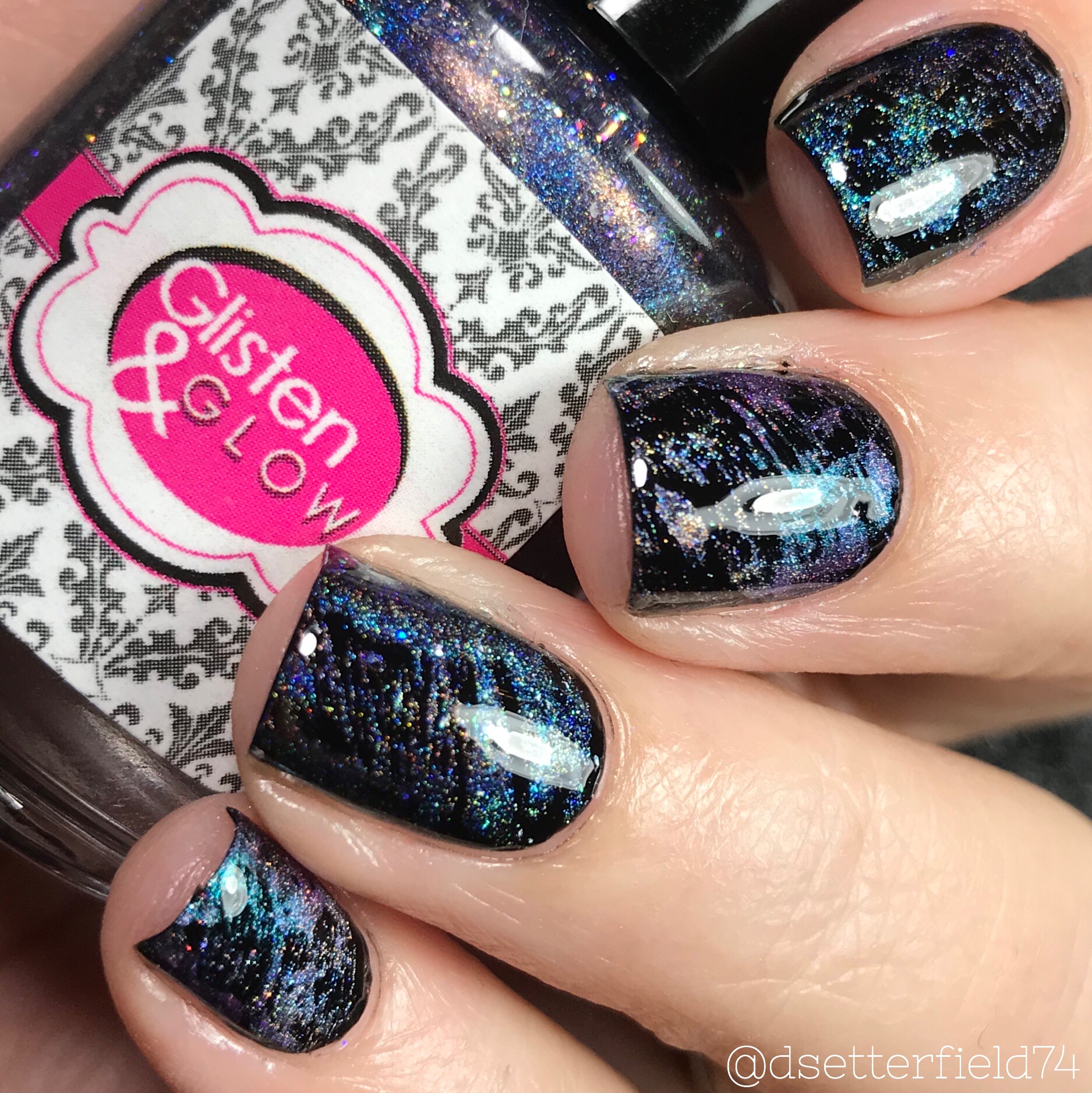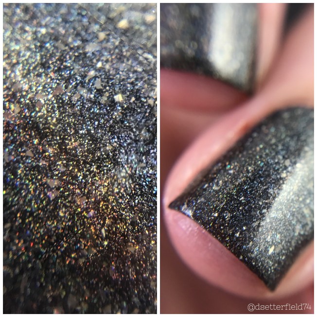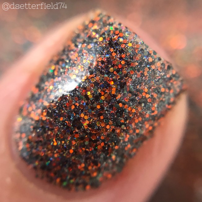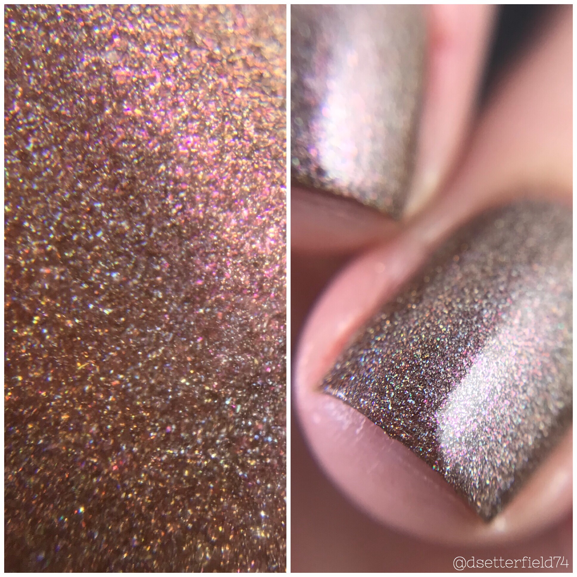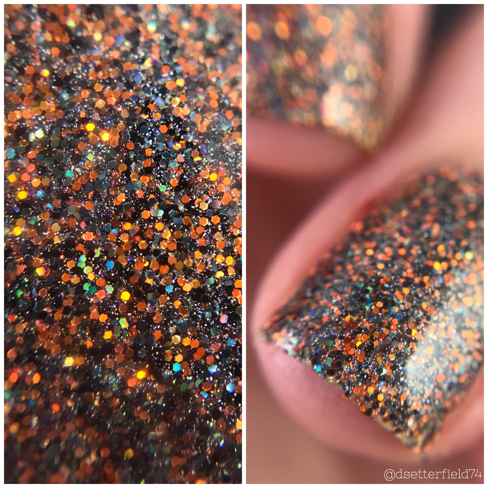 DESCRIPTION: A deep blackened indigo holographic with copper shimmer and tiny twinkling microglitters