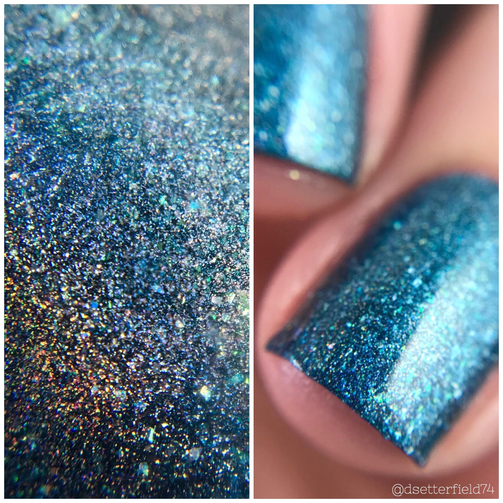 DESCRIPTION: A navy blue holographic with blue to green color shifting shimmers
