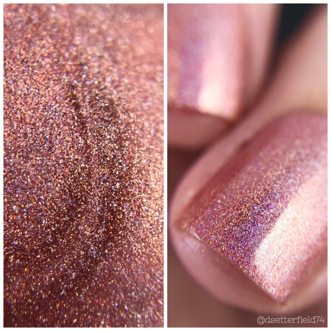 DESCRIPTION: A softly pink, near copper linear holographic