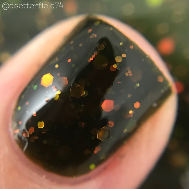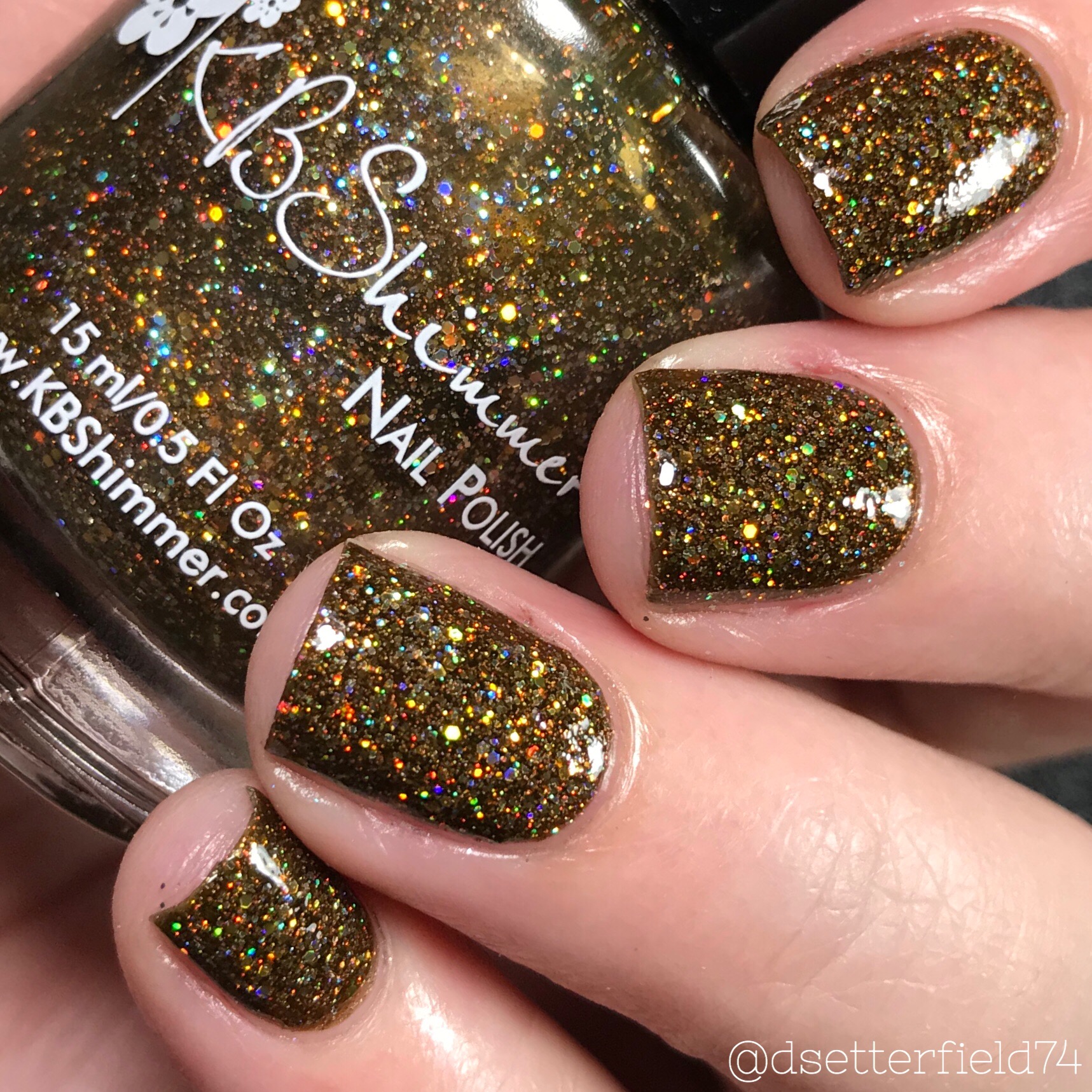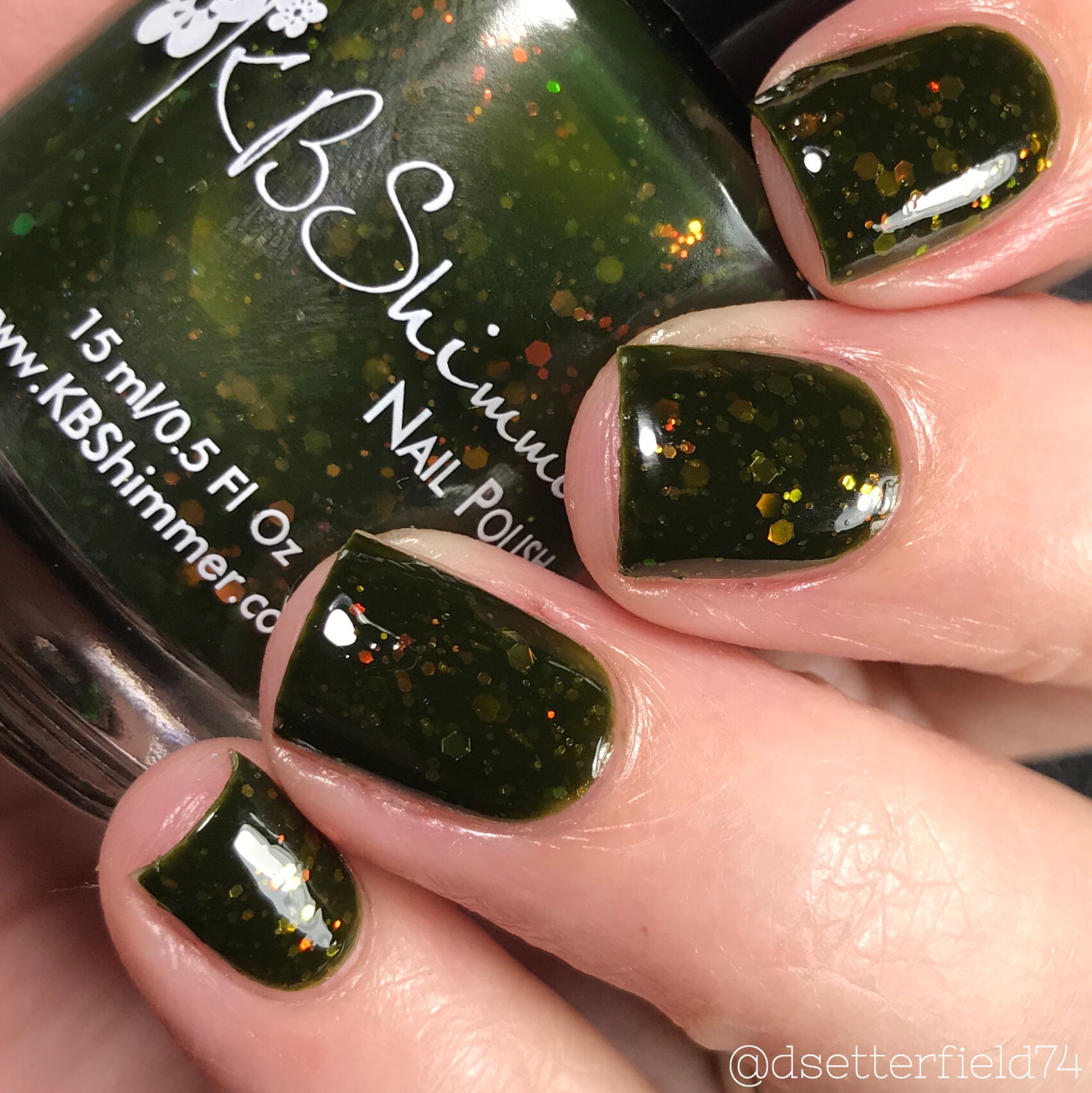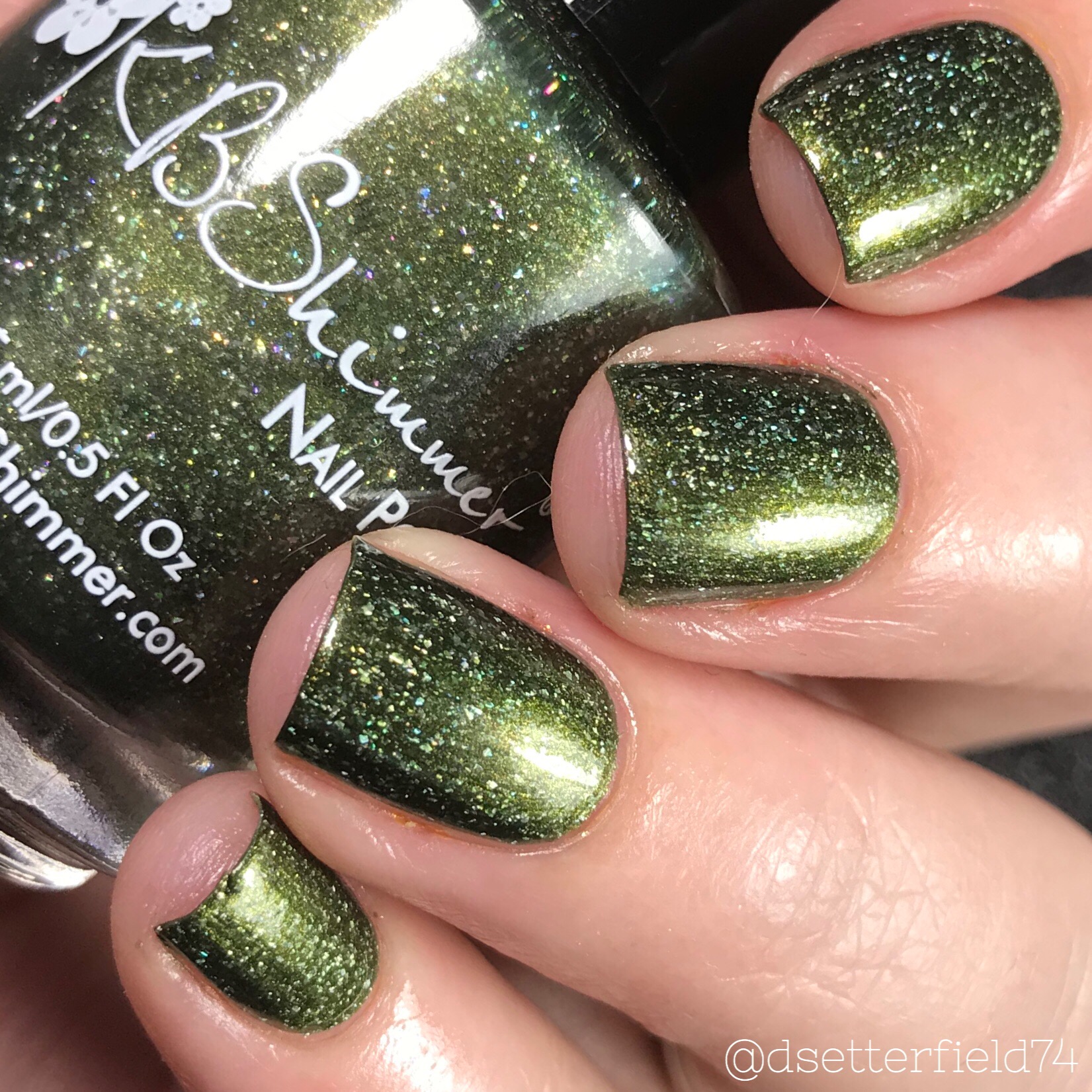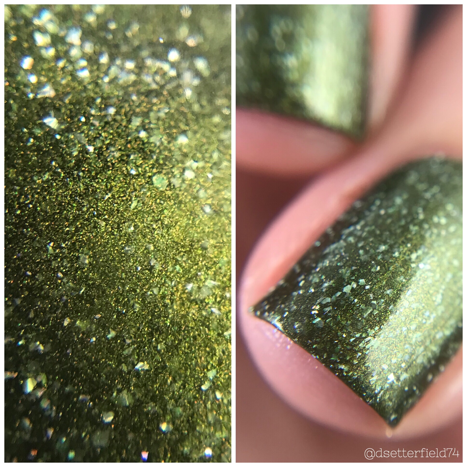 DESCRIPTION: A deepened olive with holo glow flakies and golden flash