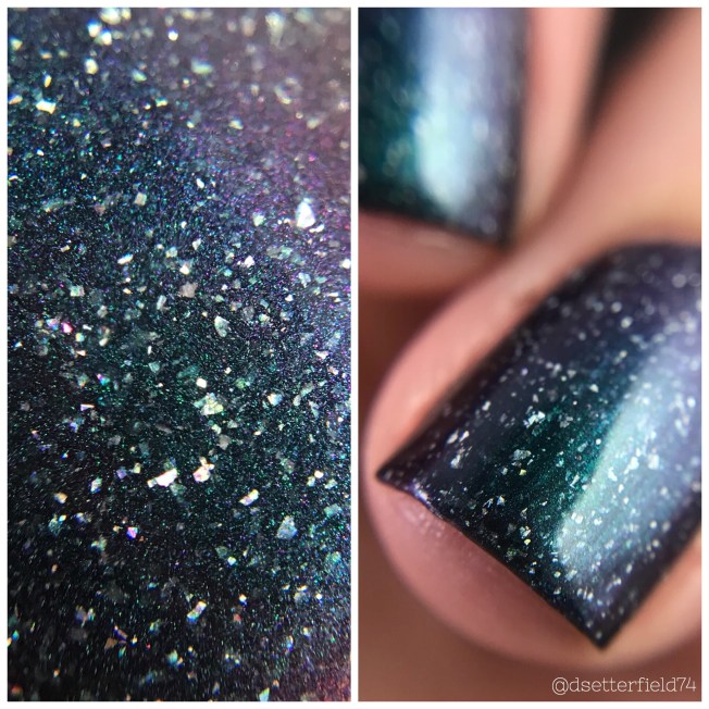 DESCRIPTION: An emerald green/indigo purple/navy shifter filled with holo glow flakies