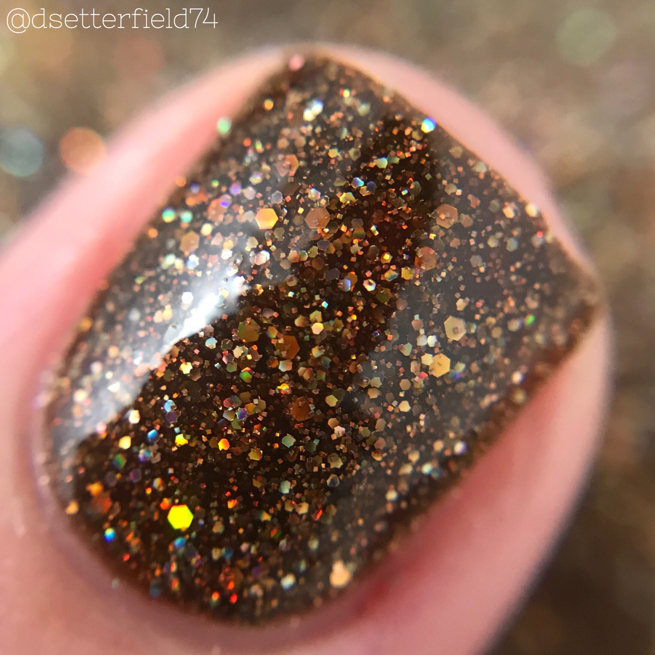 DESCRIPTION: A rich brown filled with copper and gold holographic microglitters