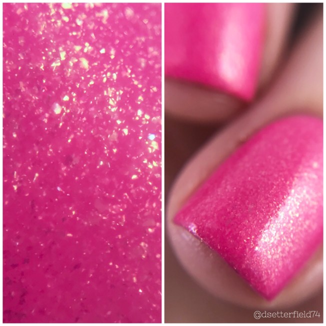 DESCRIPTION: A hot pink polish filled with micro golden flakies and shimmer