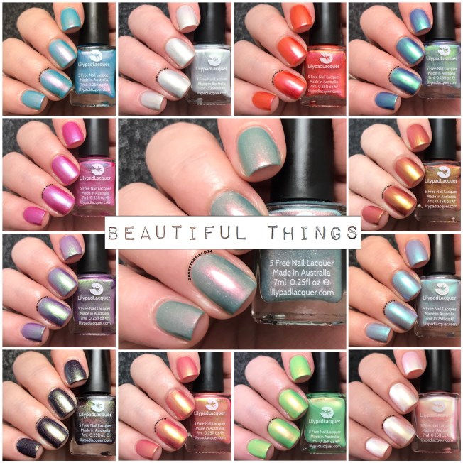 I received a very generous swatch pack from the lovely Nicole from Lilypad Lacquer, an awesome Australian indie brand. I have the entire Beautiful Things collection to show you today, and lemme tell you how suuuuuper unattractive you’re about to get in here. It’s 18,000 tickets to the Drool Convention, at minimum.