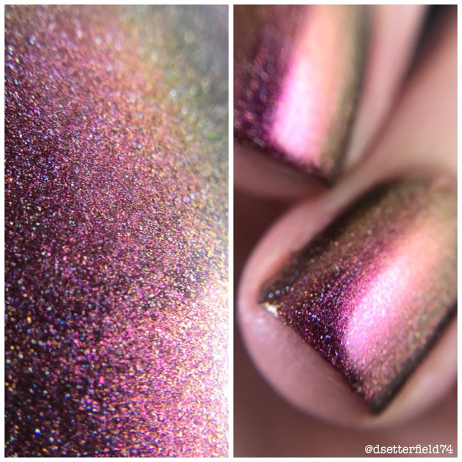 Another super sparkly almost glittery shifter that goes from red to blue to purple with flashes of copper and green in a purple jelly base with a linear holographic finish. At first, this one looks somewhat similar to Take Me Drunk, I’m Home but then you realize it’s a different toned purple. I’d show you a comparison, but I don’t plan things very well. I am a DADGUM PROFESSIONAL, clearly.