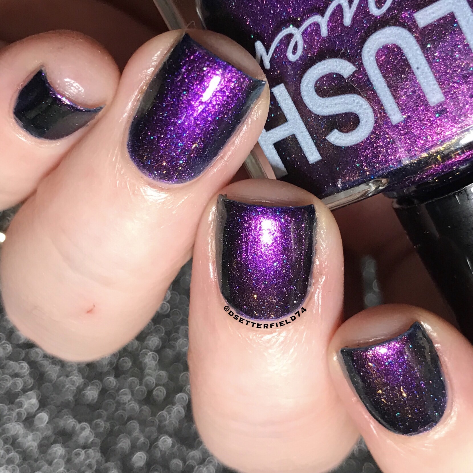 Okay, this one is better. I like it. Still pretty simple, but the image is fun. Played off that purple shimmer by stamping in purple, and if I’m not mistaken, I might’ve thought this one out a little bit. Which is a good thing, cuz when I don’t think things through, bad things happen. One should not stamp all willy nilly. Unless 17 images on one nail is what I mean.