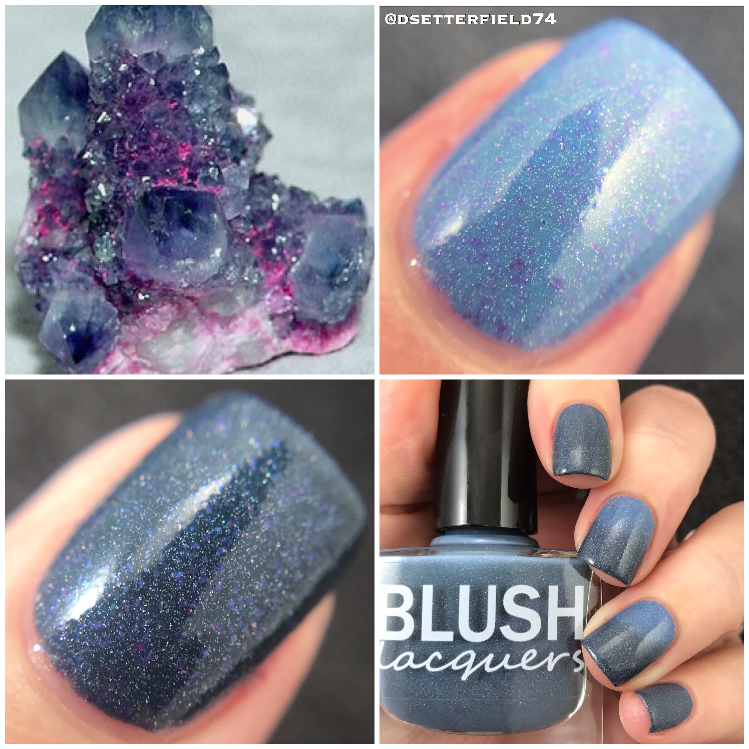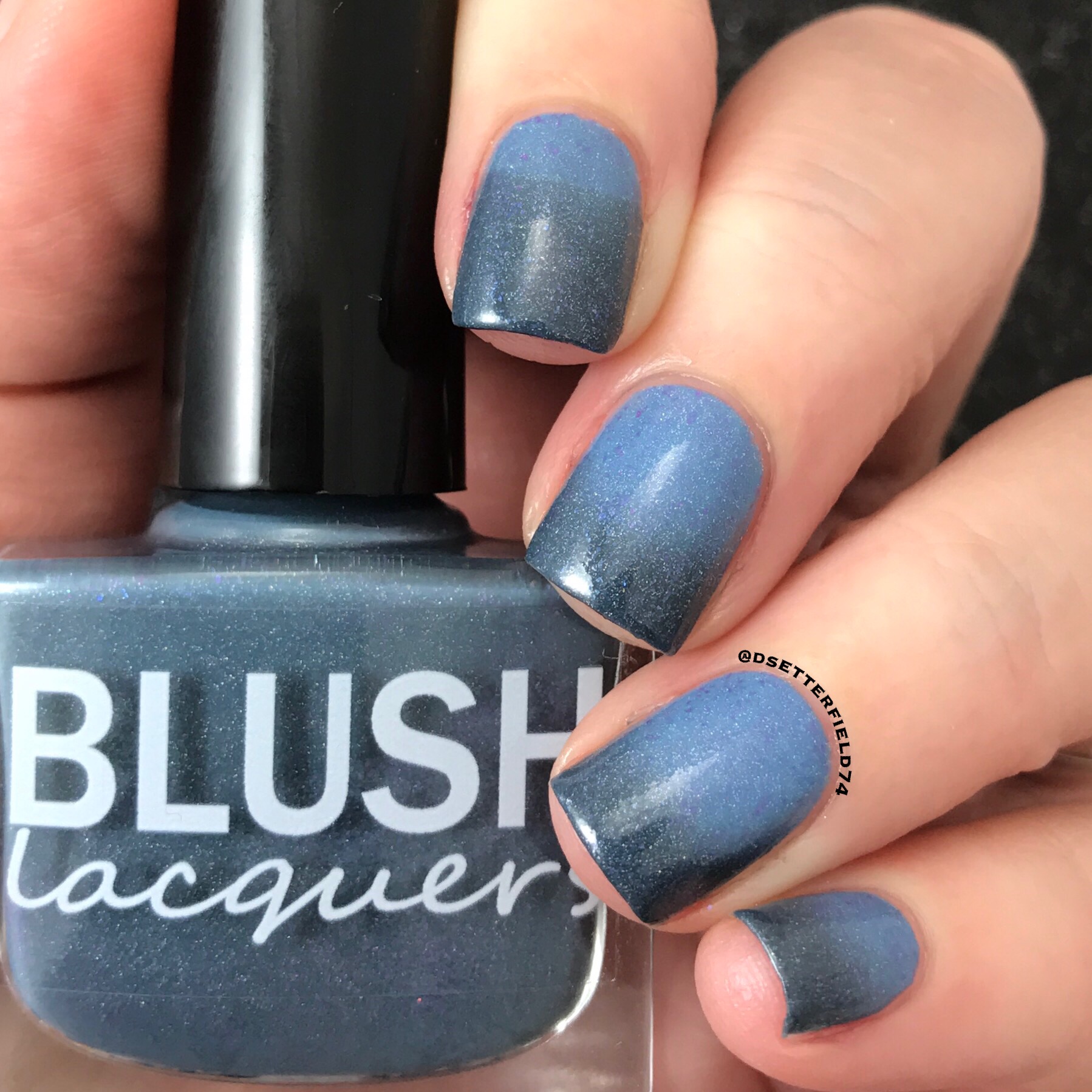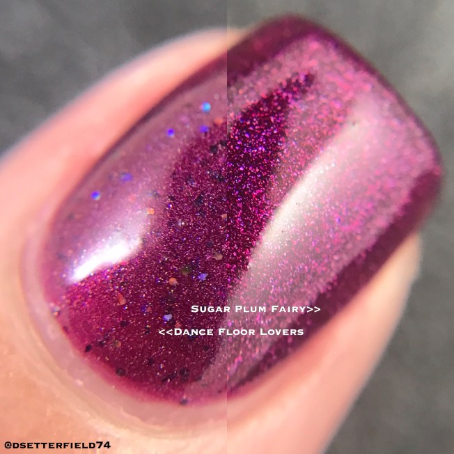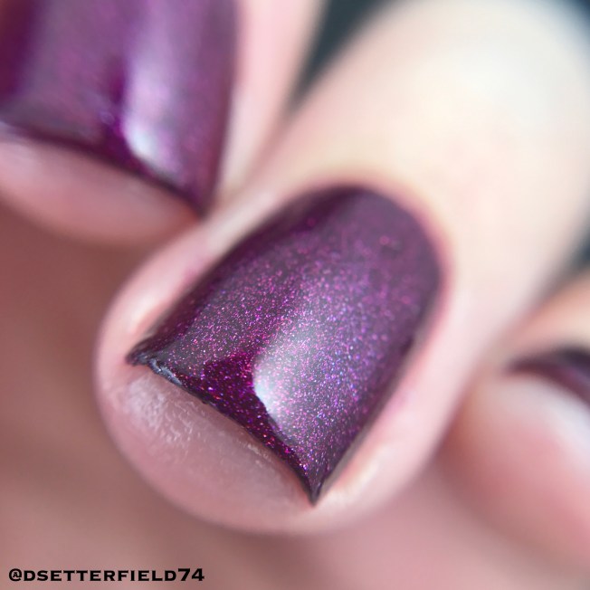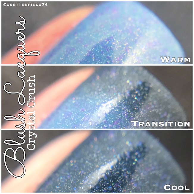 Base on this one is like a faded denim blue when warm then dark blue-grey when cooled with added holo and magenta to blue shifting flakies. I love how these two shades blend together. A perfect combo. If it was any more perfect, it might as well be a couch and pajamas, cuz I can’t think of anything else more fabulous than that.