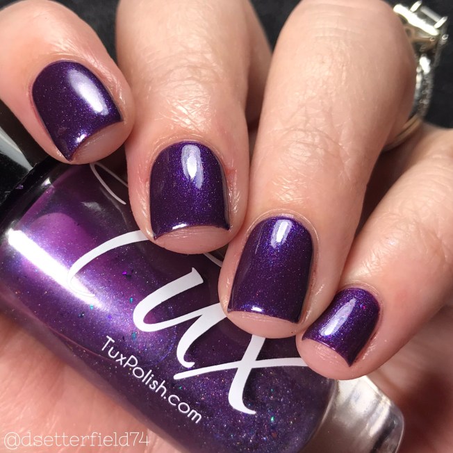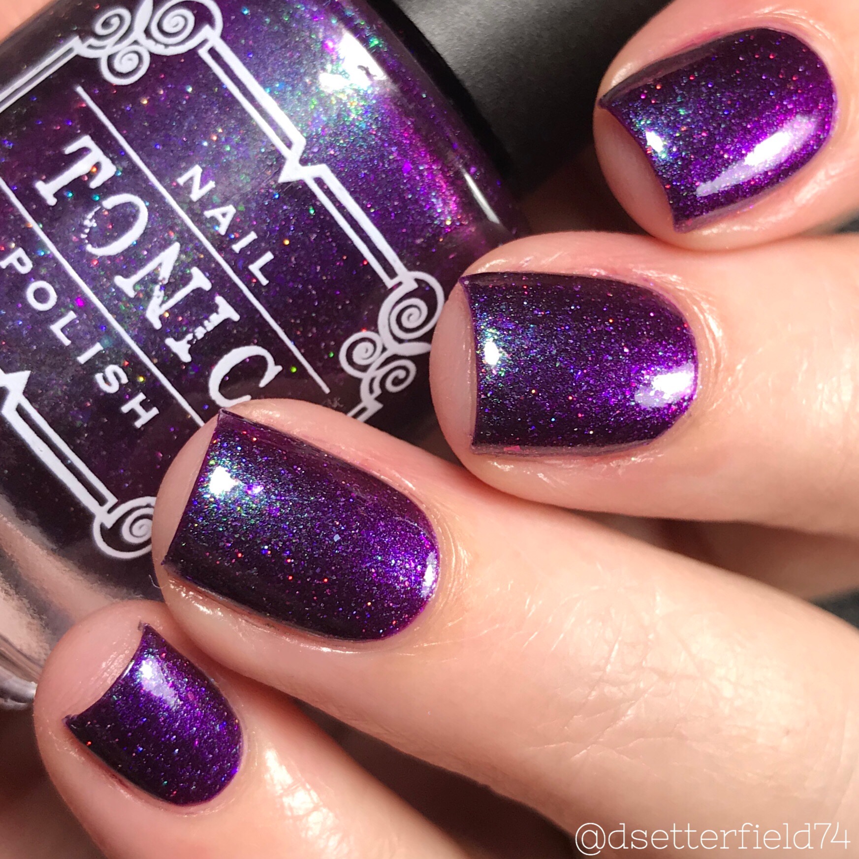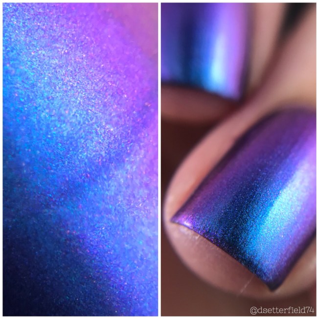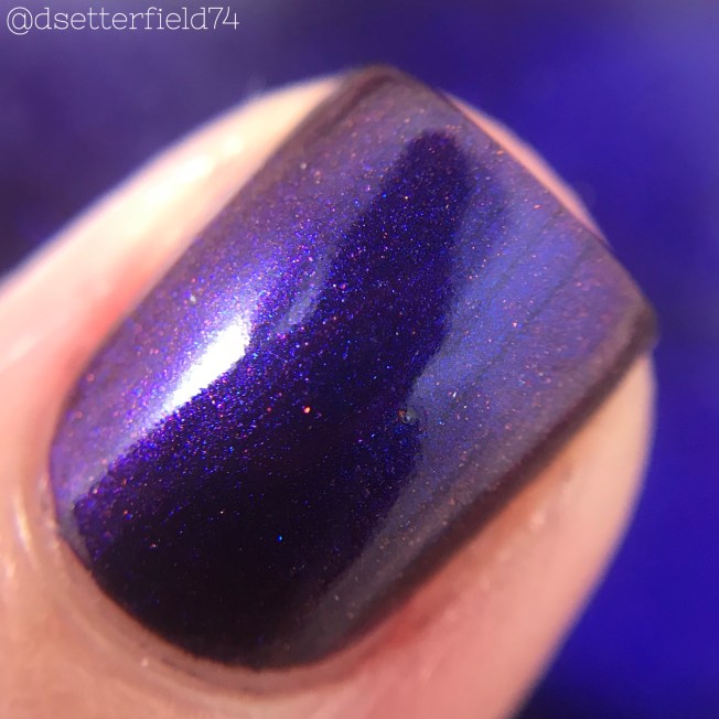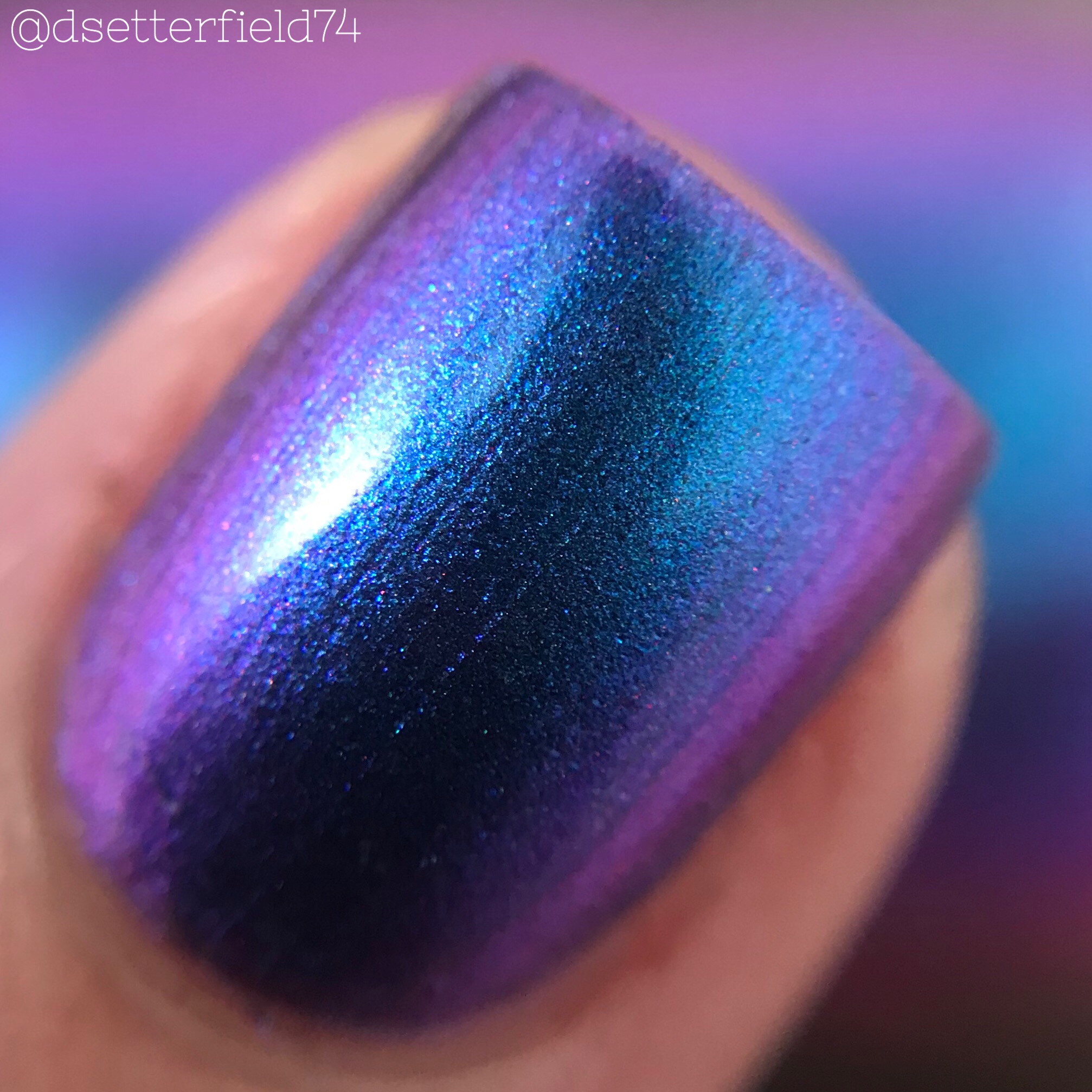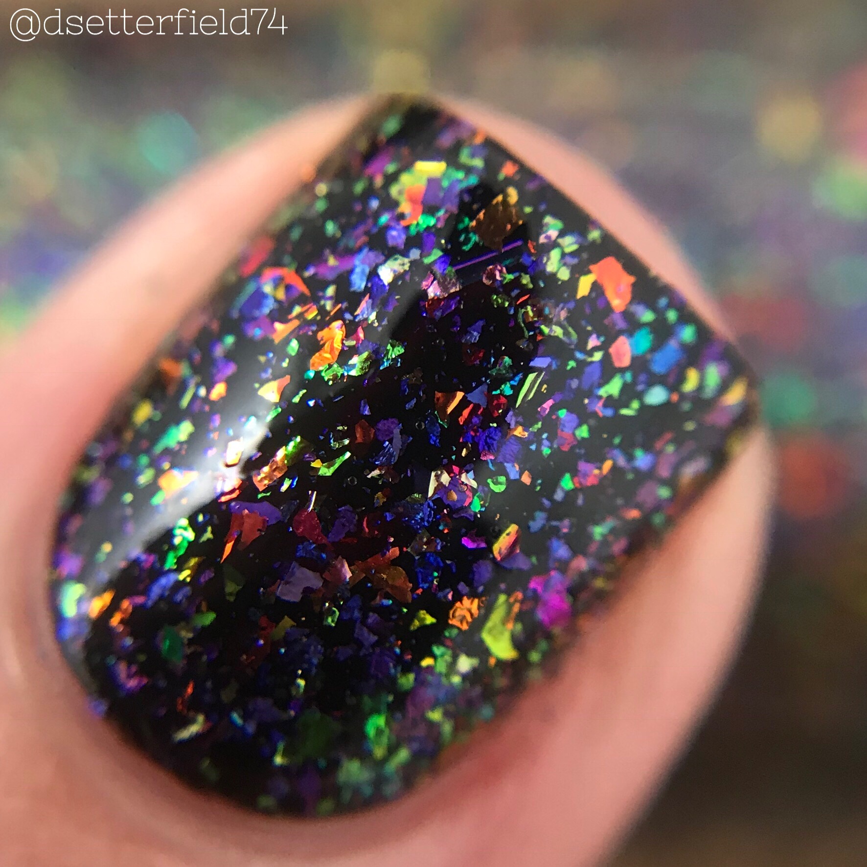 DESCRIPTION:  A deep grape purple with green/fuchsia/purple large particle multichrome shimmers, a hint of green//fuchsia/purple multichrome shimmer, iridescent flakies and tiny silver holographic microglitters