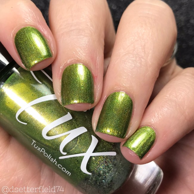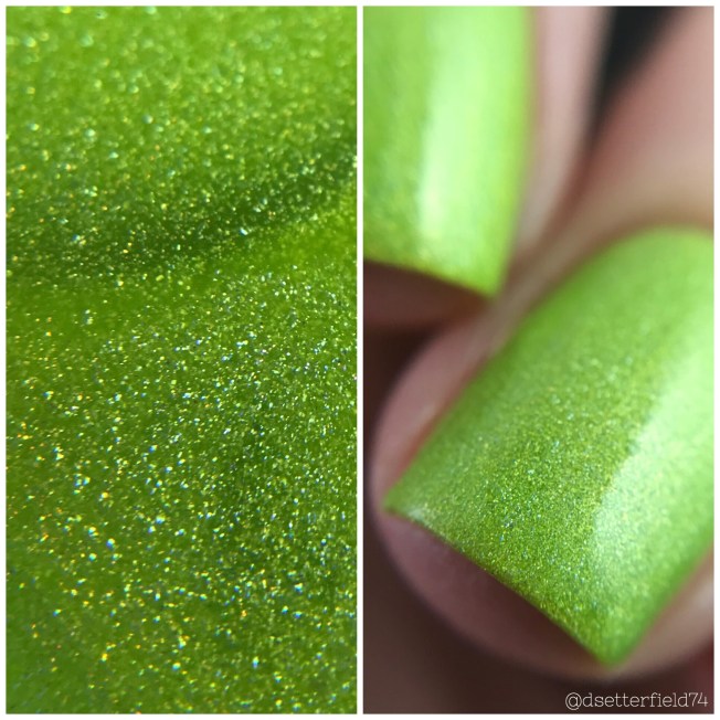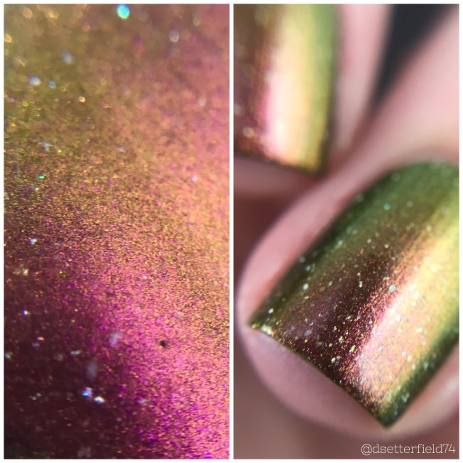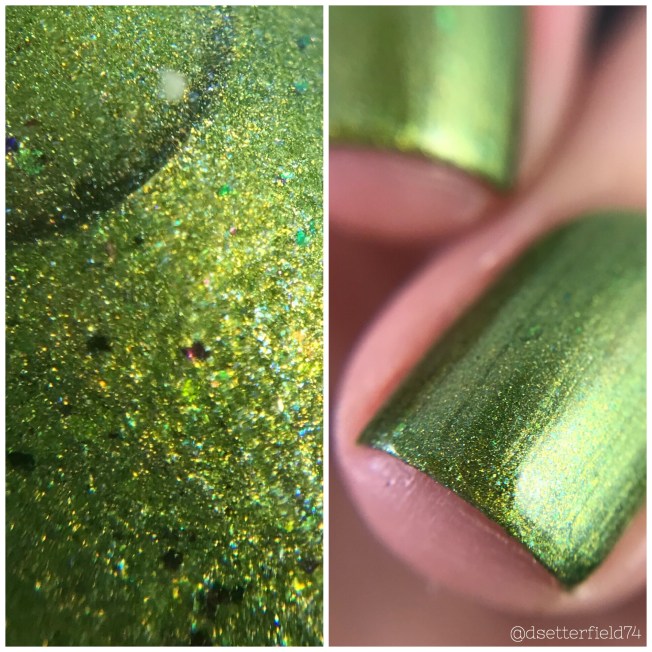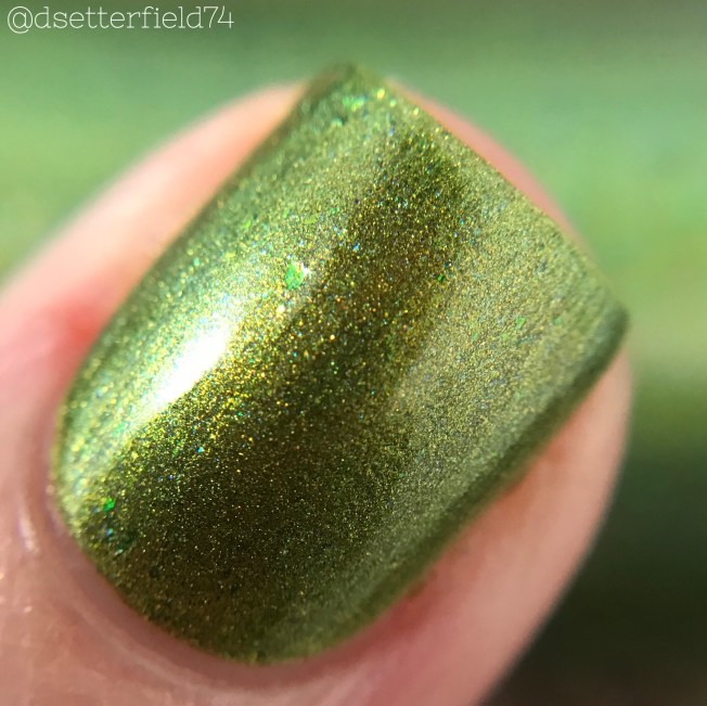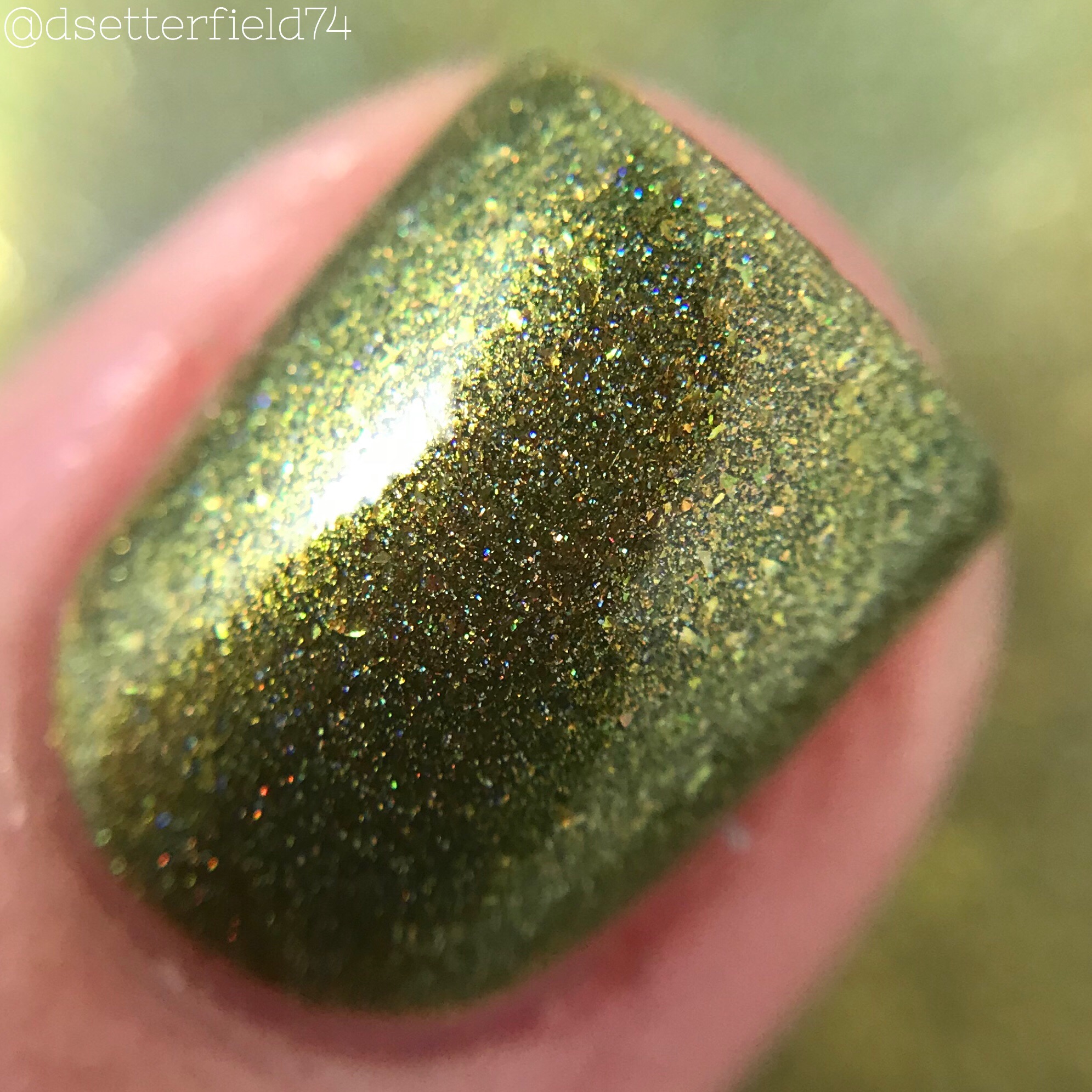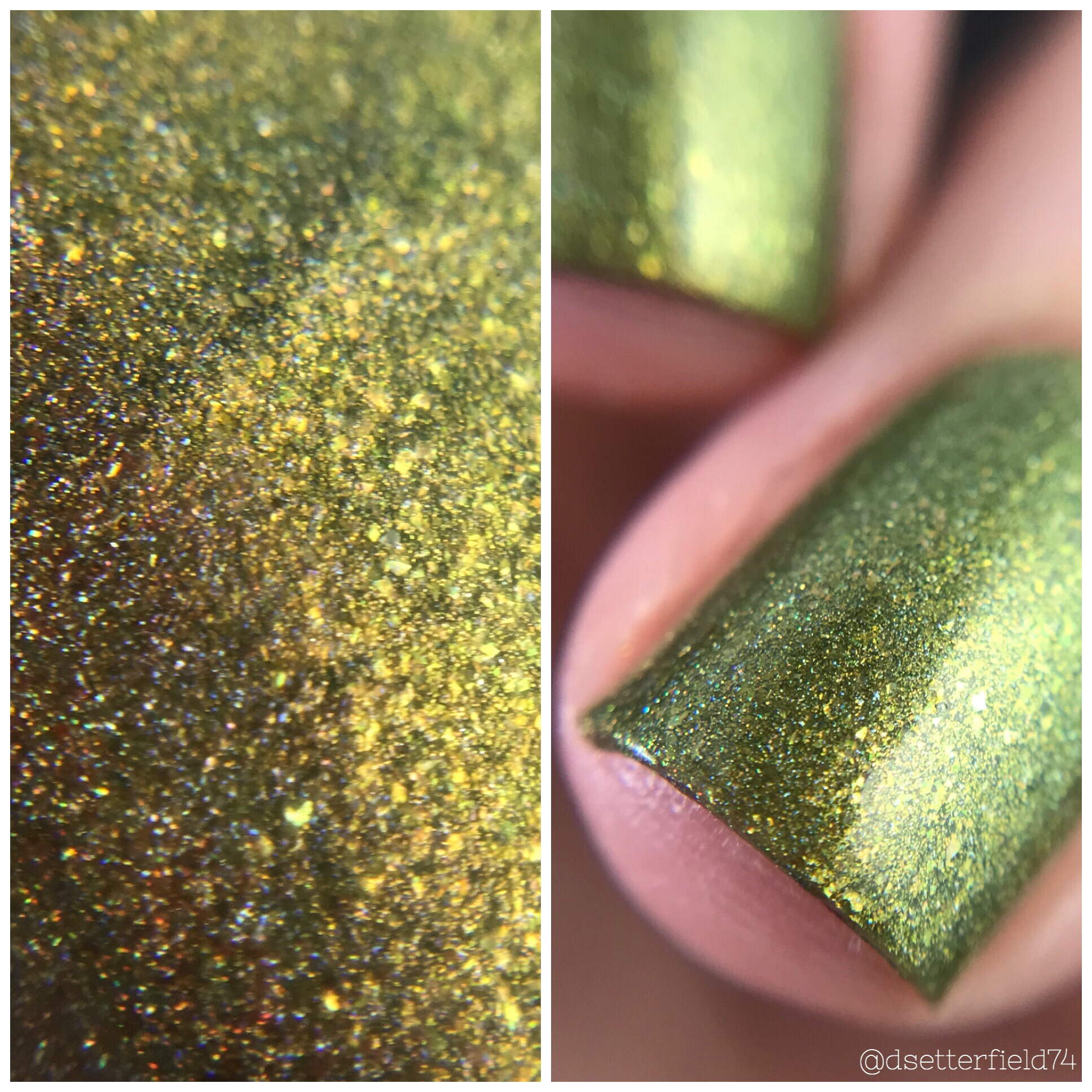 DESCRIPTION:  An olive base with gold shimmer, gold flakies and holographic pigment