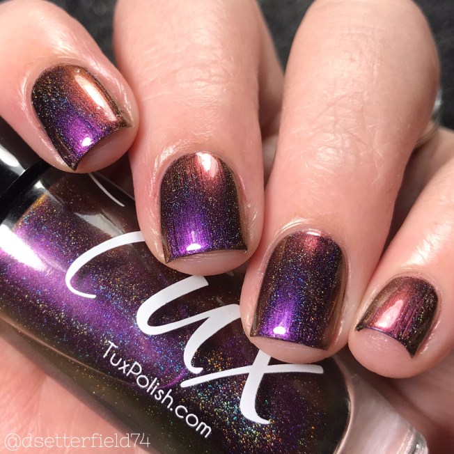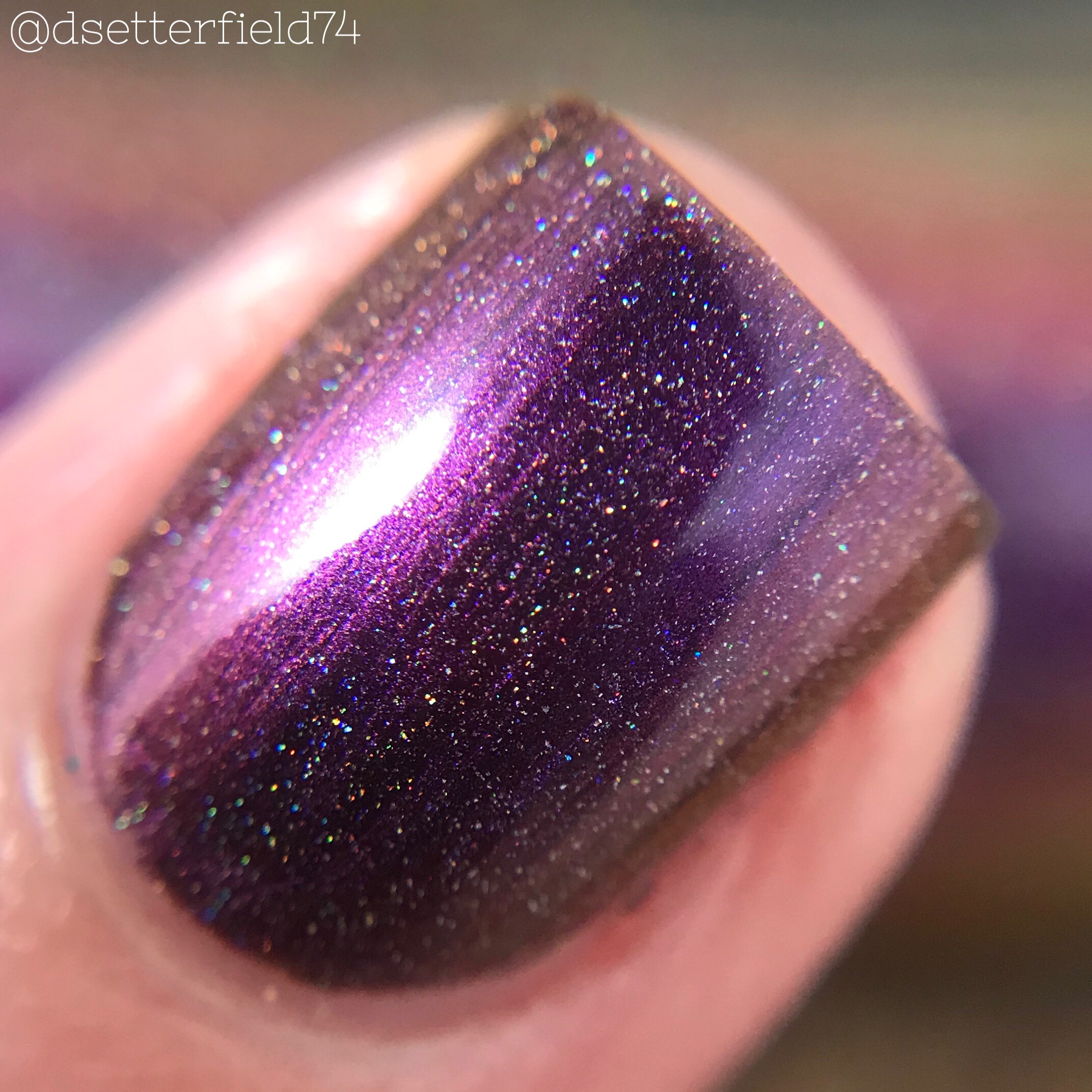 DESCRIPTION:  A deep berry purple with a shifting green/blue/red shimmer, holographic pigment and gold/red/green flakies