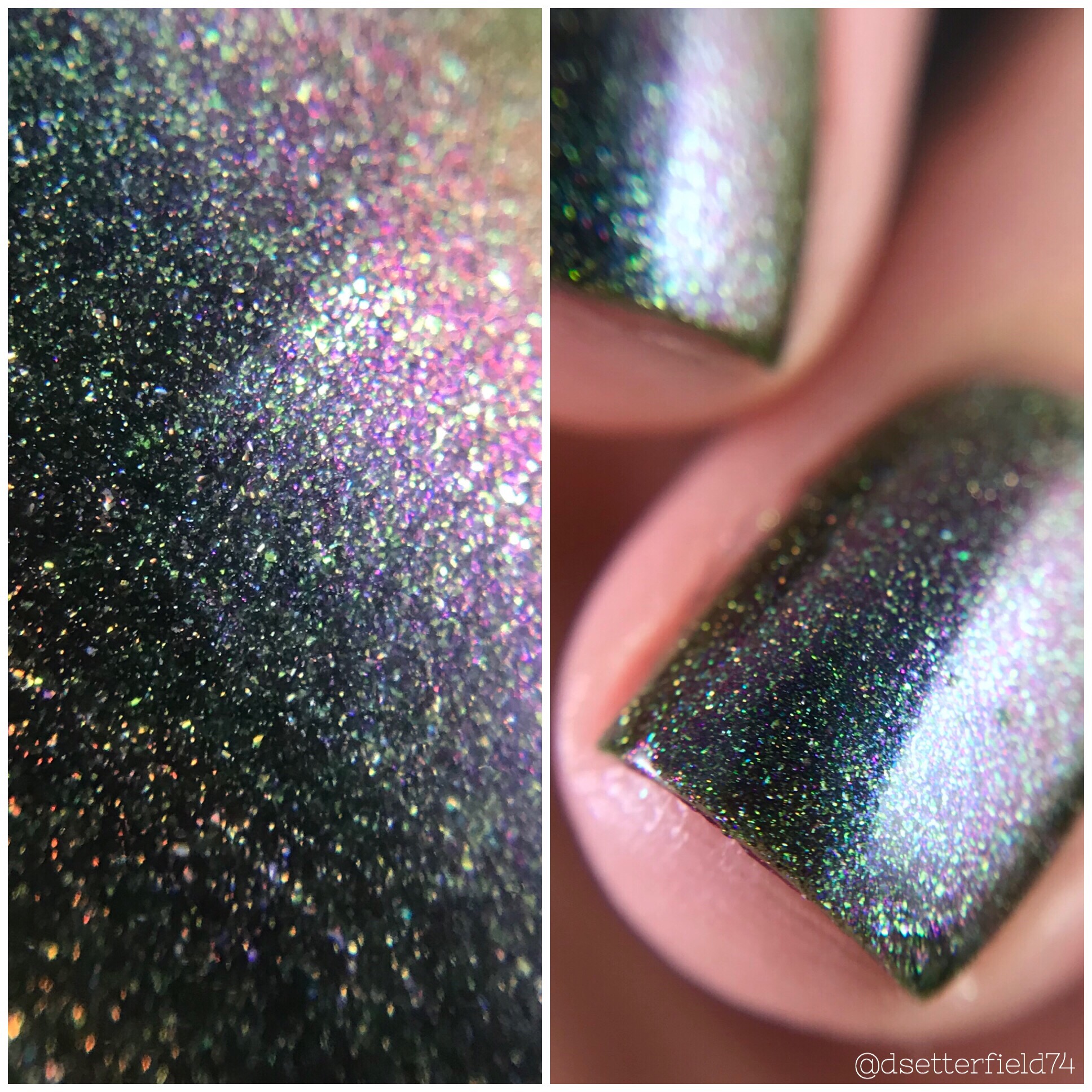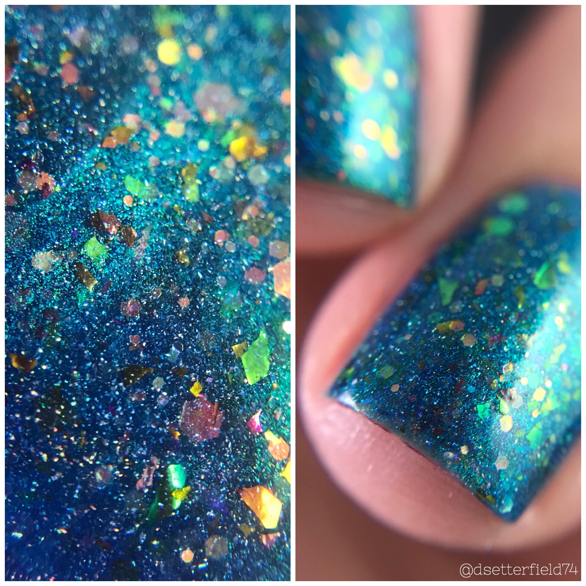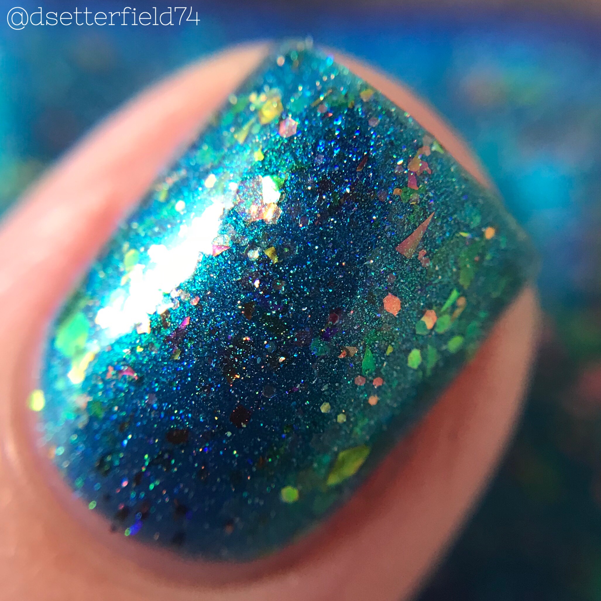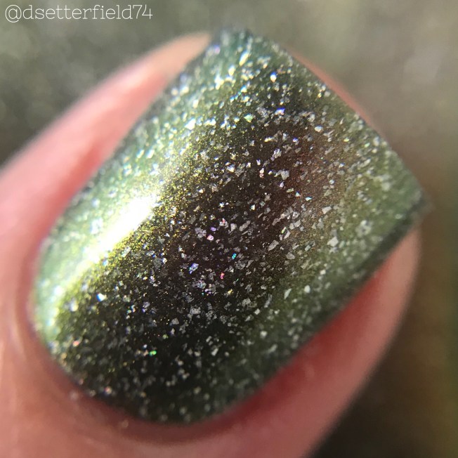 DESCRIPTION: A mint green with sparkling holographic flakies and subtle purple shimmer