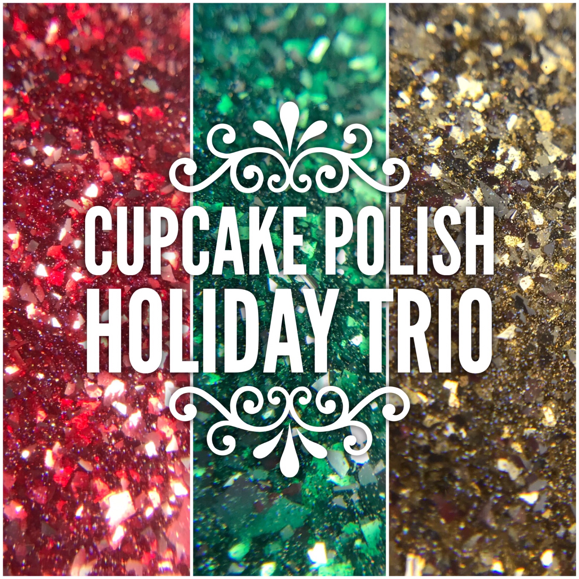 This is the Holiday 2017 Collection, a set of six beauties full of shimmer and flakies and noodle legs GALORE! Seriously, every single one of these: STUNNING. If this collection was clear across the room and I really really wanted it, I would consider walking over there myself instead of asking my husband to do it.