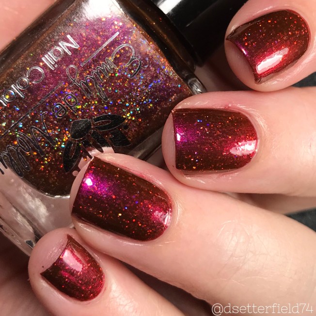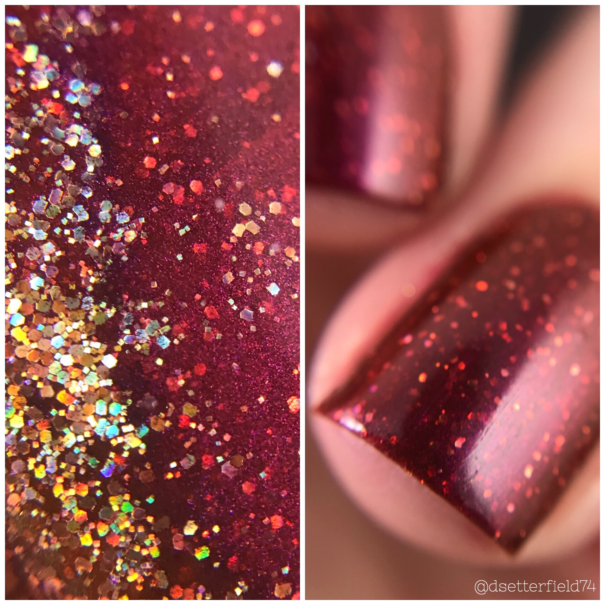 DESCRIPTION: A deep pink holographic with chameleon flakies and pink, gold, and blue holographic microflakies