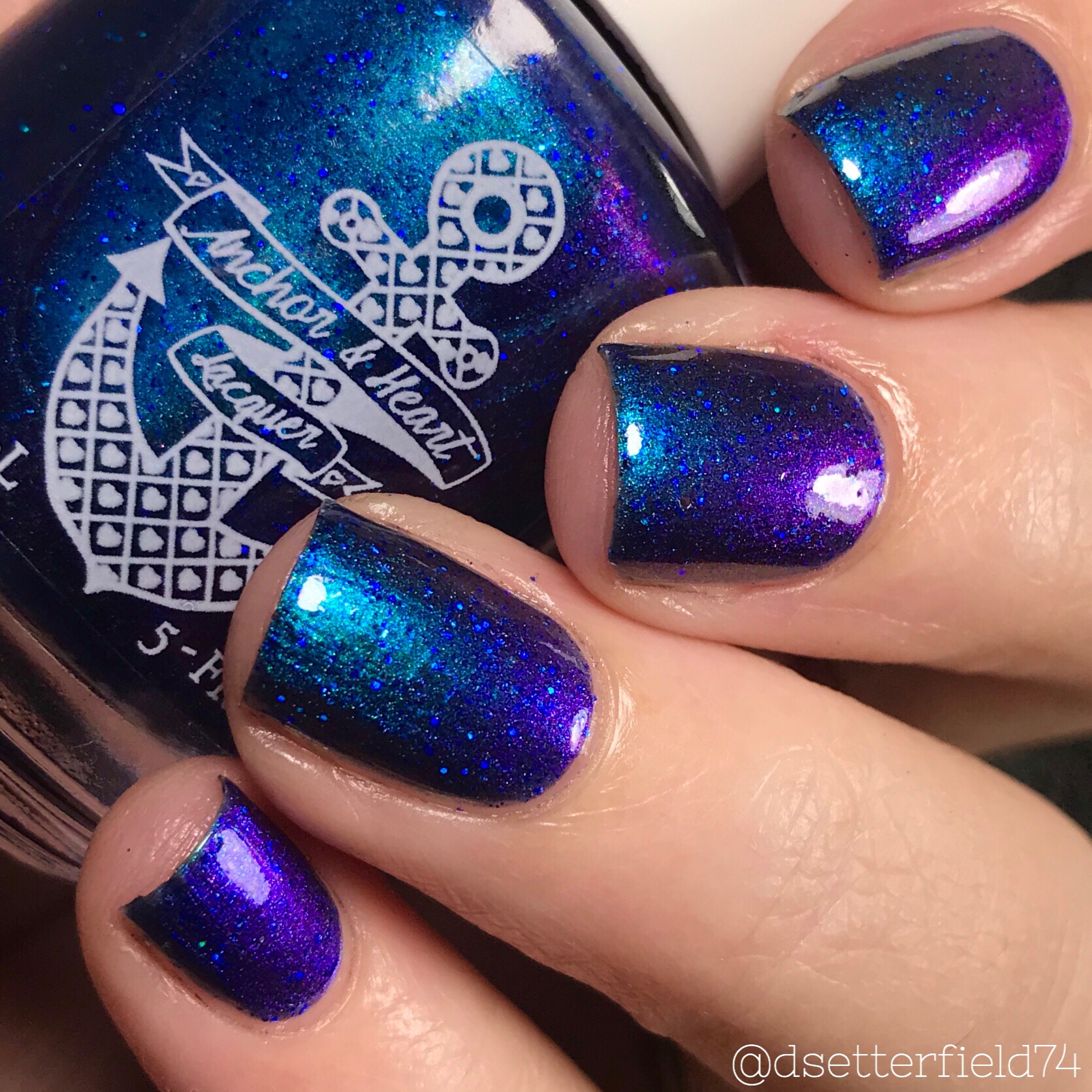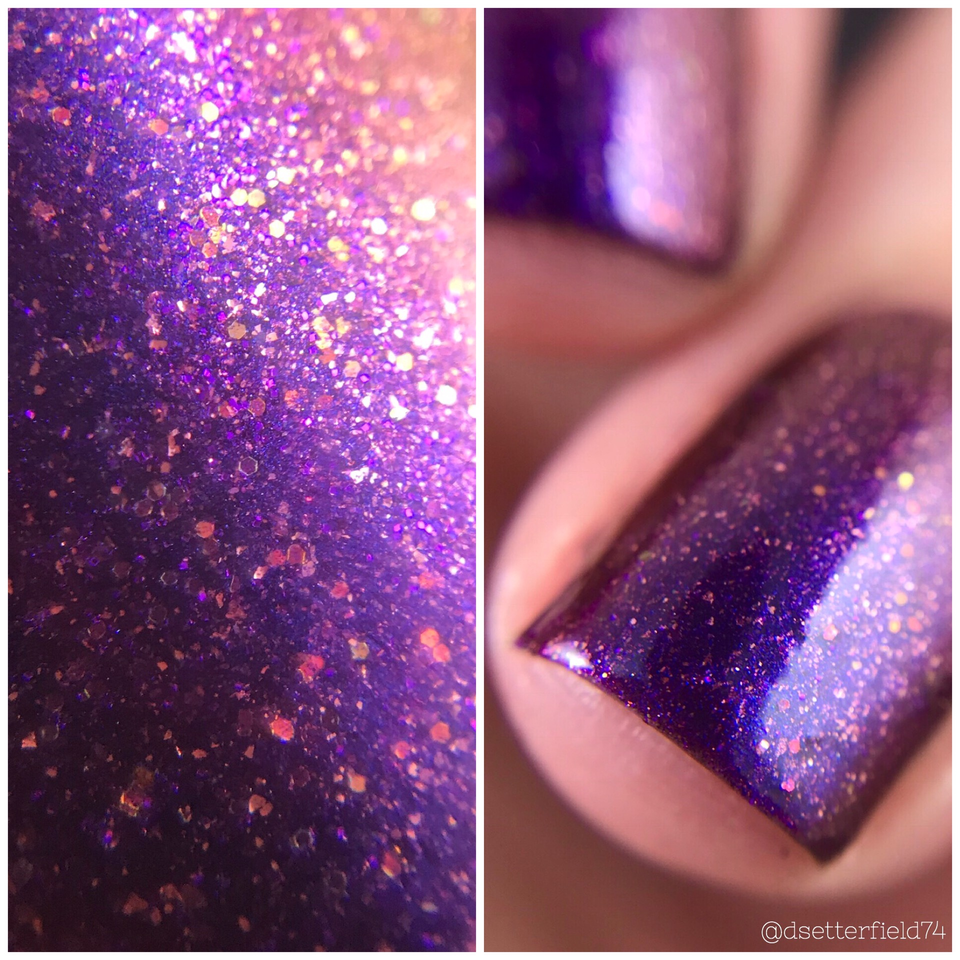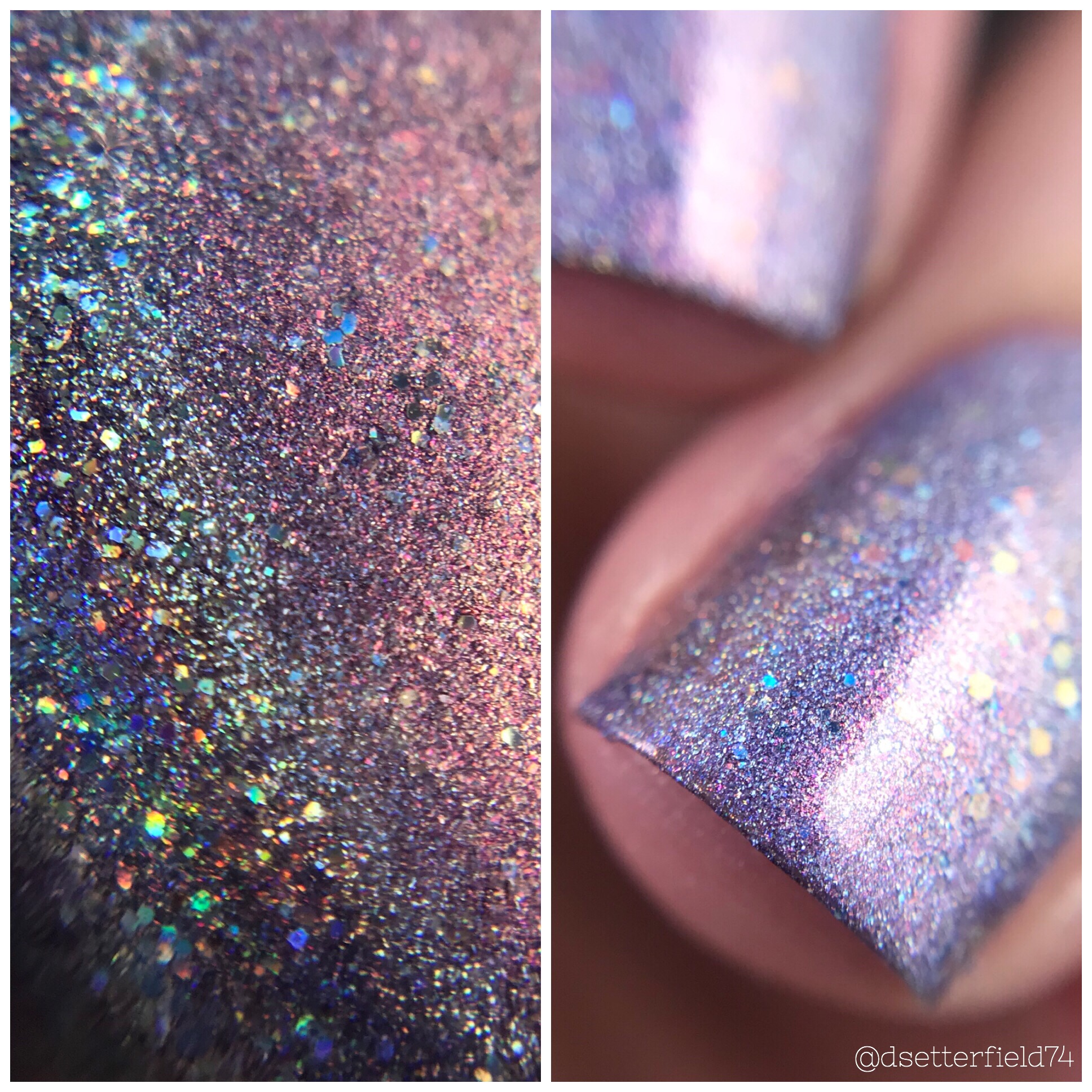 DESCRIPTION: A deep blurple holographic with chameleon flakies and pink, purple and green holographic microflakies