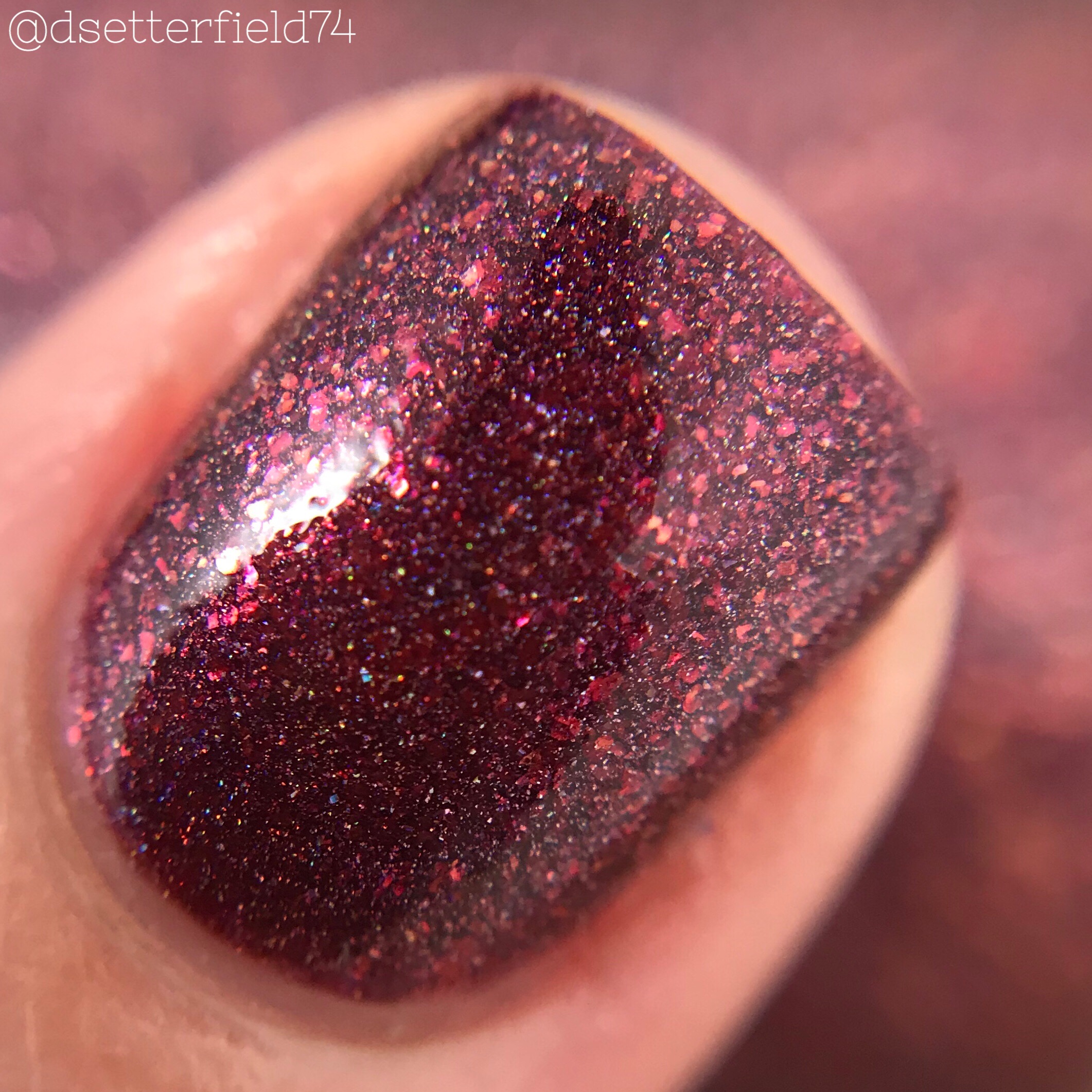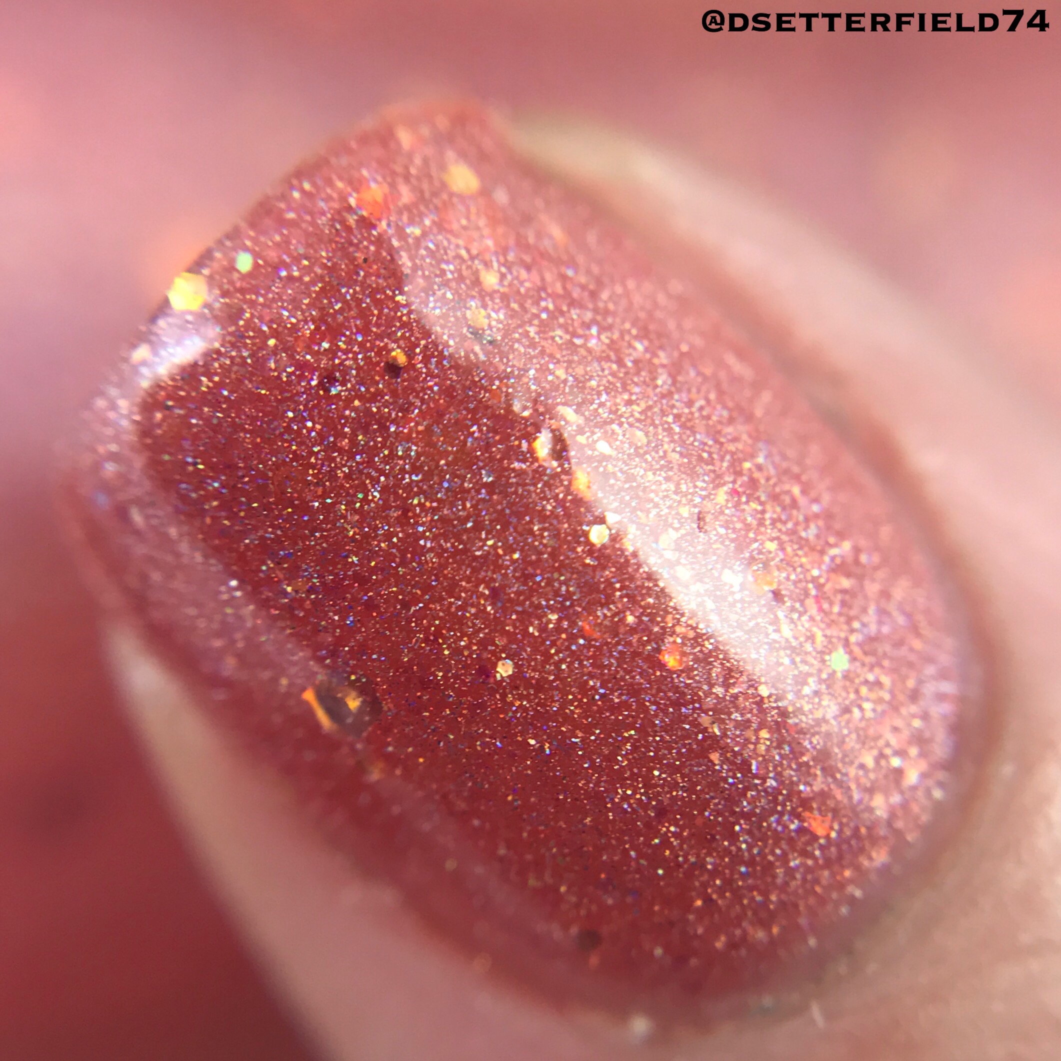 DESCRIPTION: A dirty oxblood/copper with holographic sparkle and small copper/red flecks