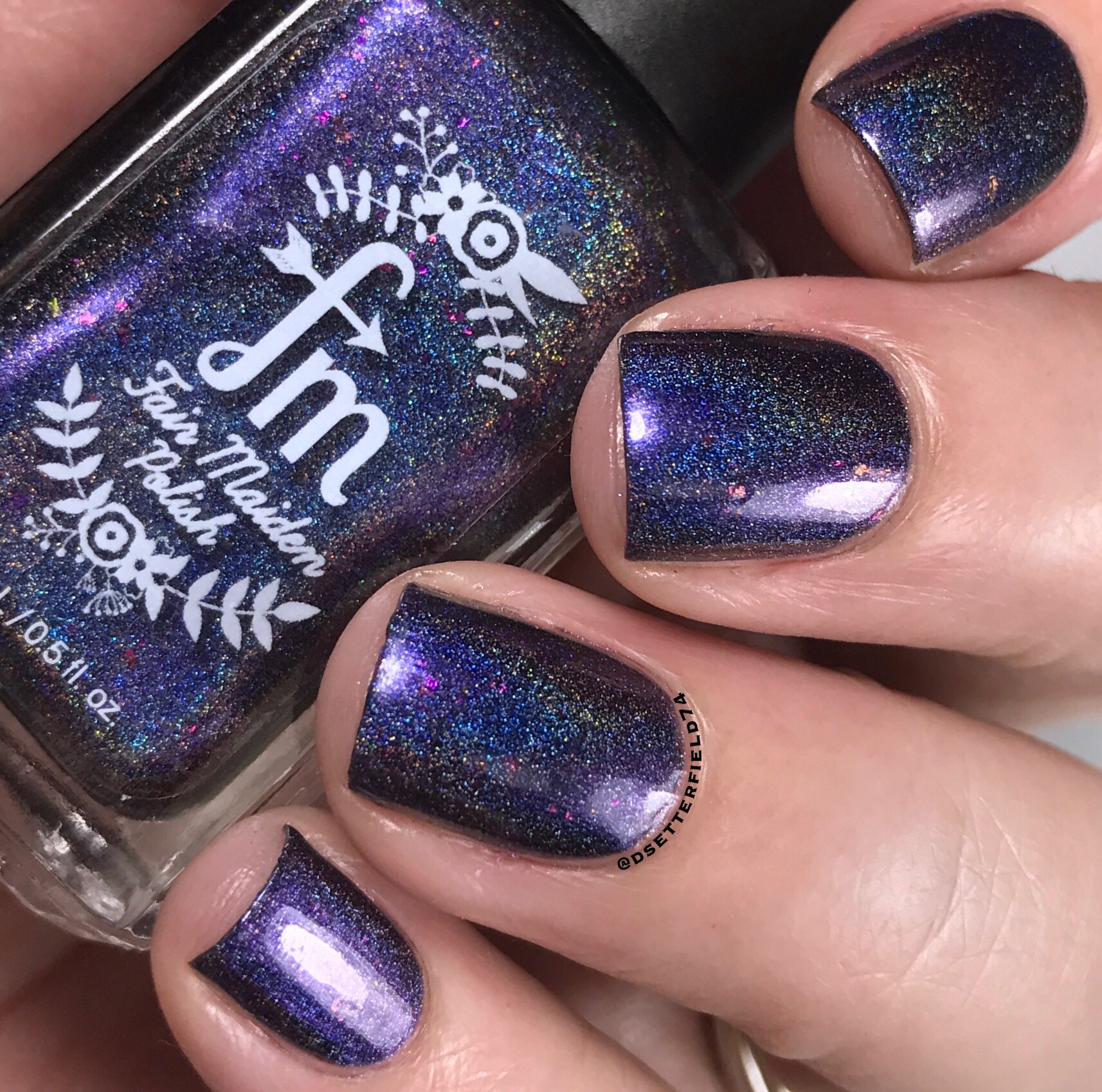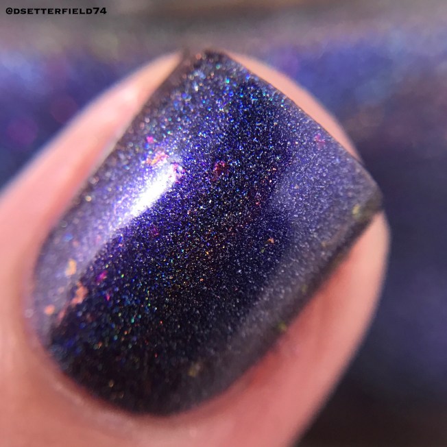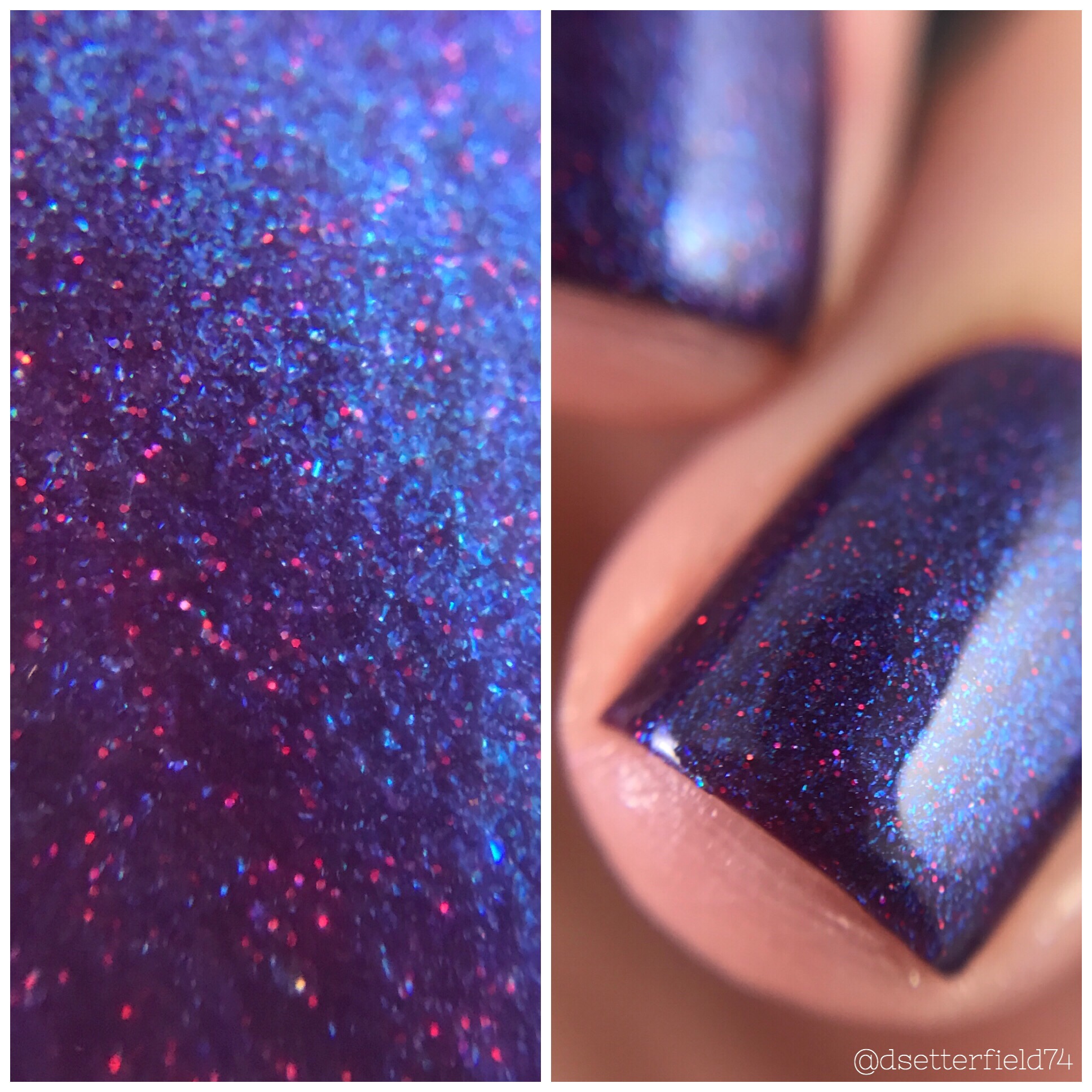 DESCRIPTION: An indigo purple holographic with iridescent purple/blue shifting glitter, aqua/purple/pink shifting flakies, slight blue to pink shift and a rainbow of chameleon chrome shifting flakies