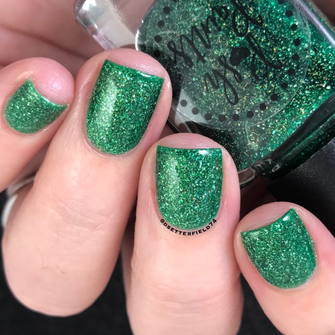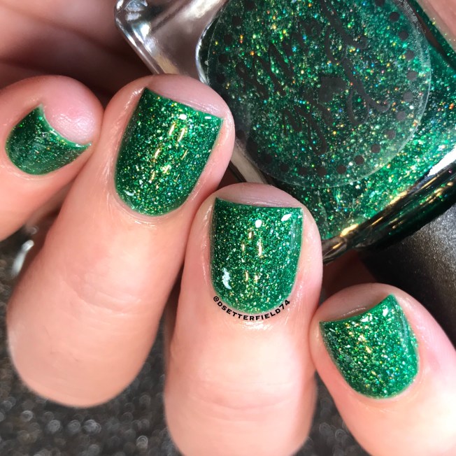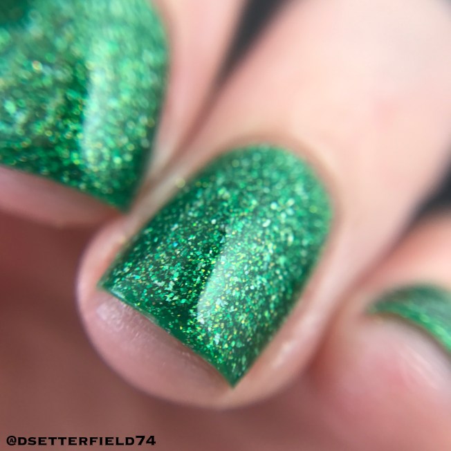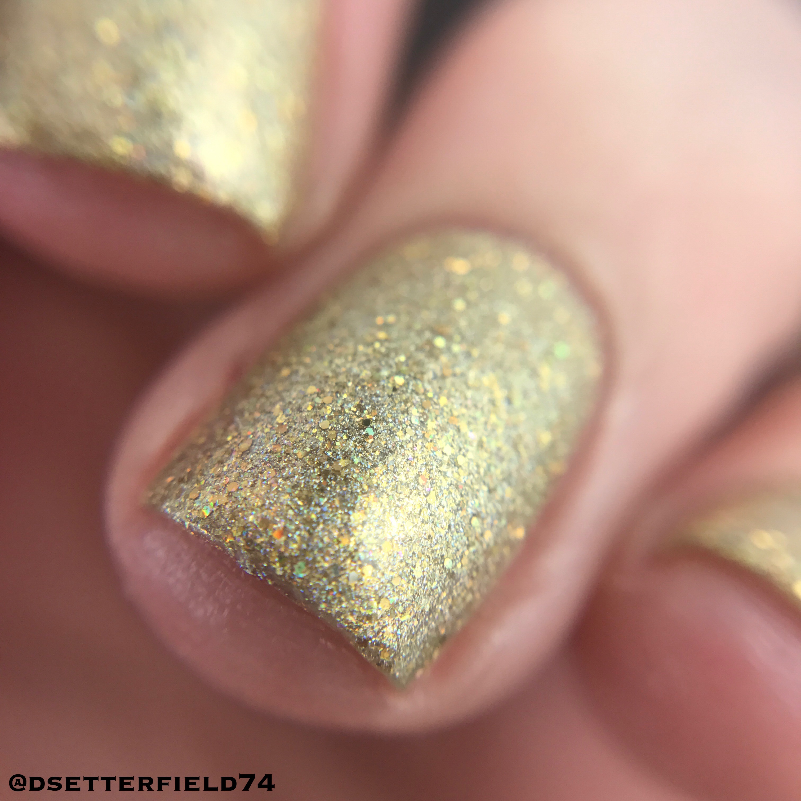 This one has a clear base full of green/blue/gold shifting flakies with color shifting glitters and holo microglitter.