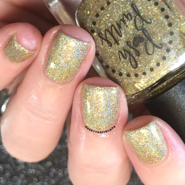 This is a multichrome flakie that shifts from voilet to pink to gold in a clear base with holo microglitter, color shifting glitters and a purple shimmer.