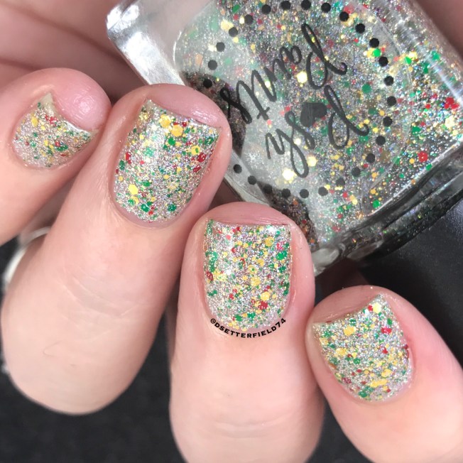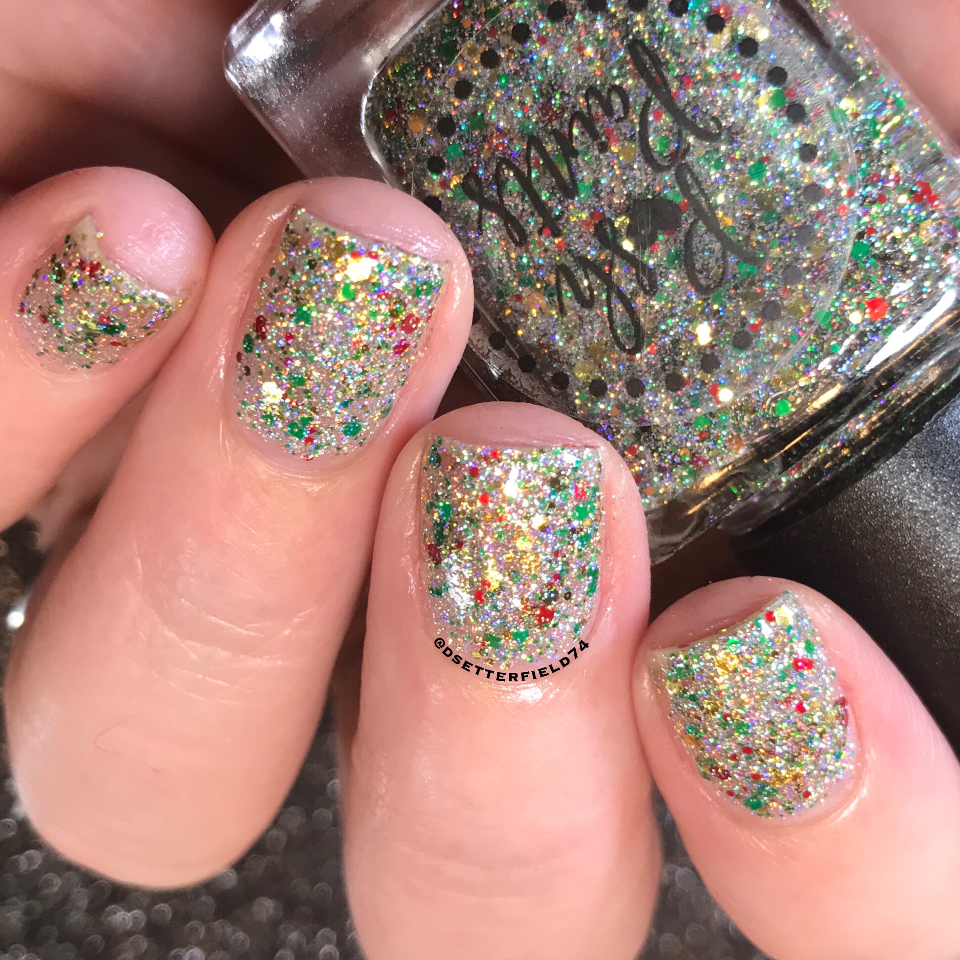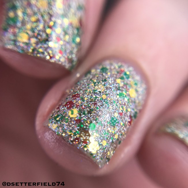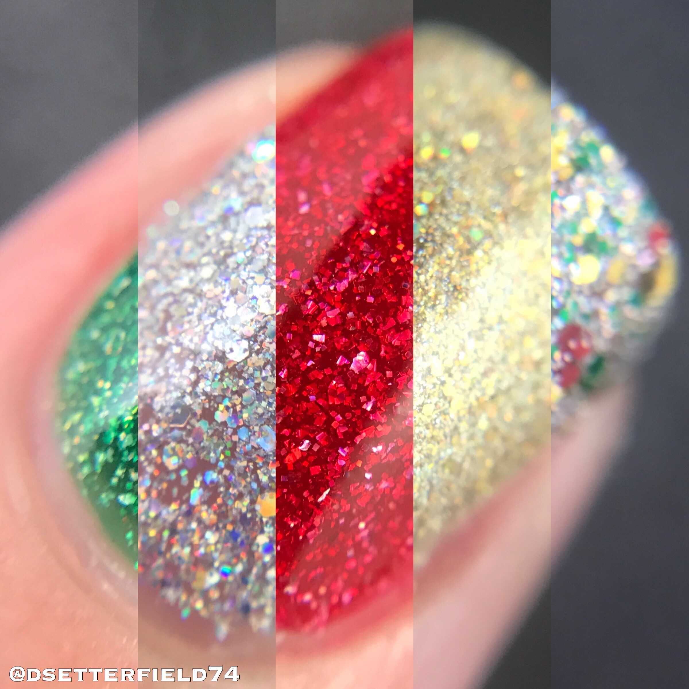 This one has a clear base full of red/green/gold shifting flakies with color shifting glitters and holo microglitter.