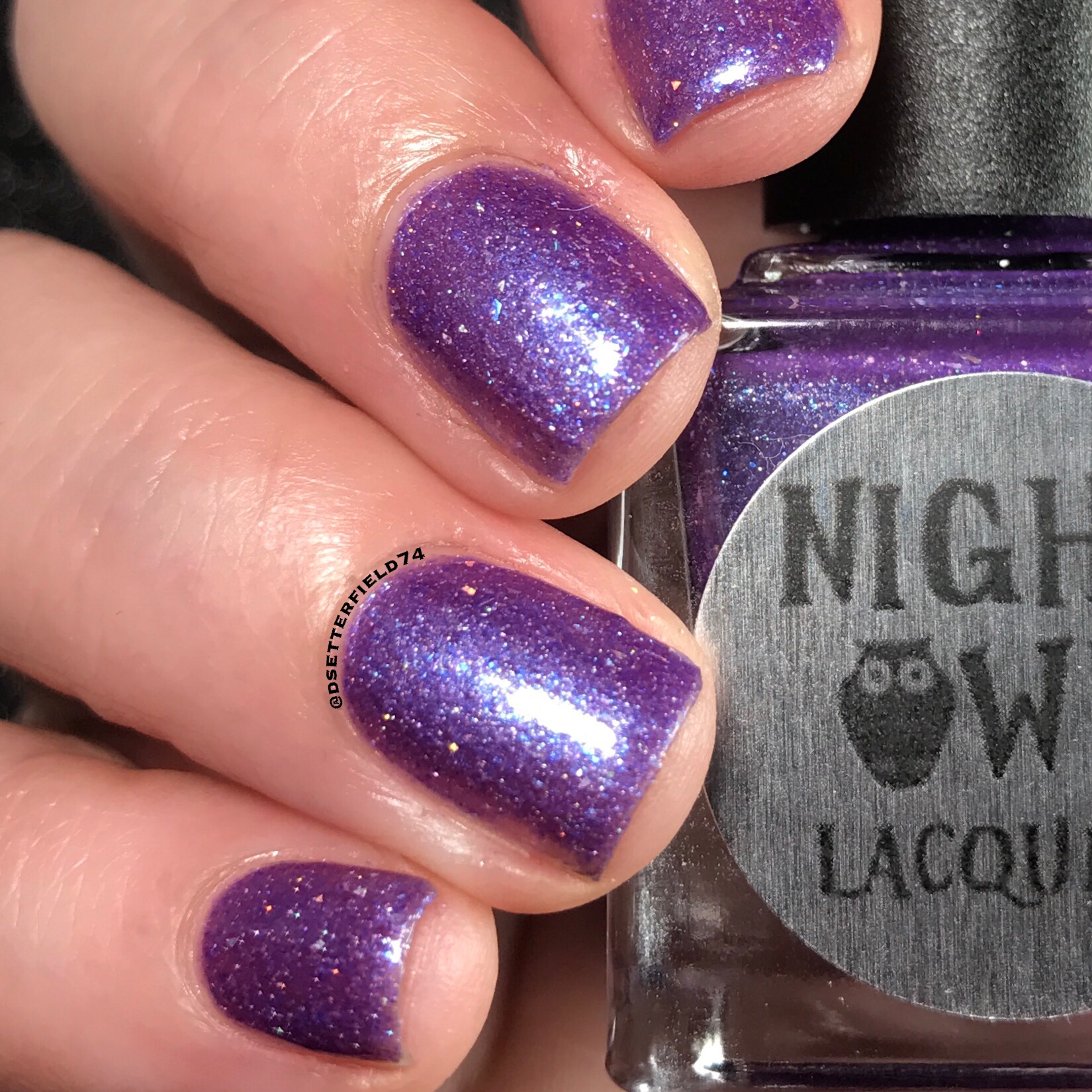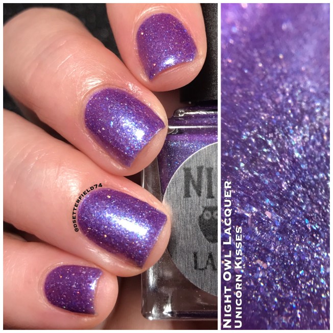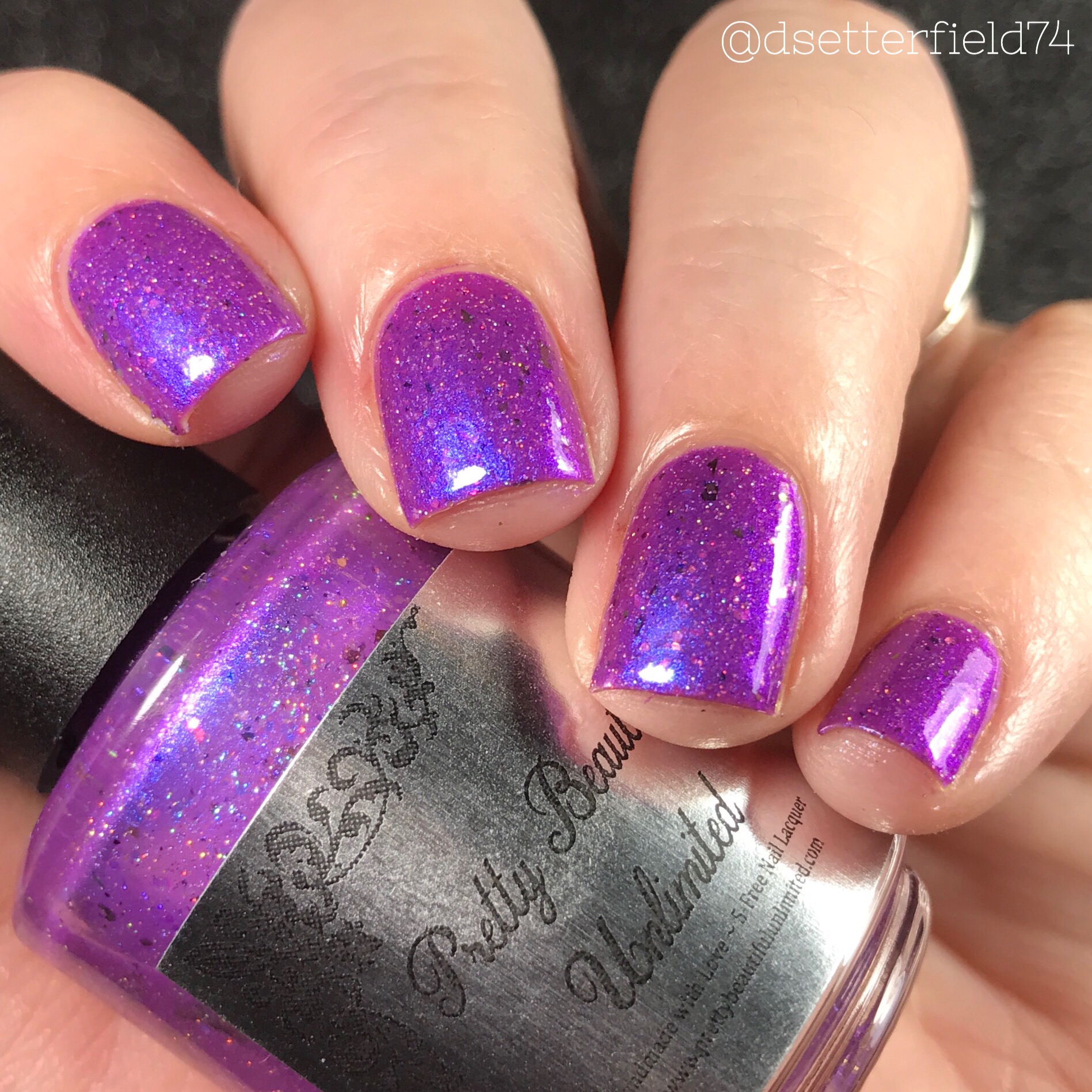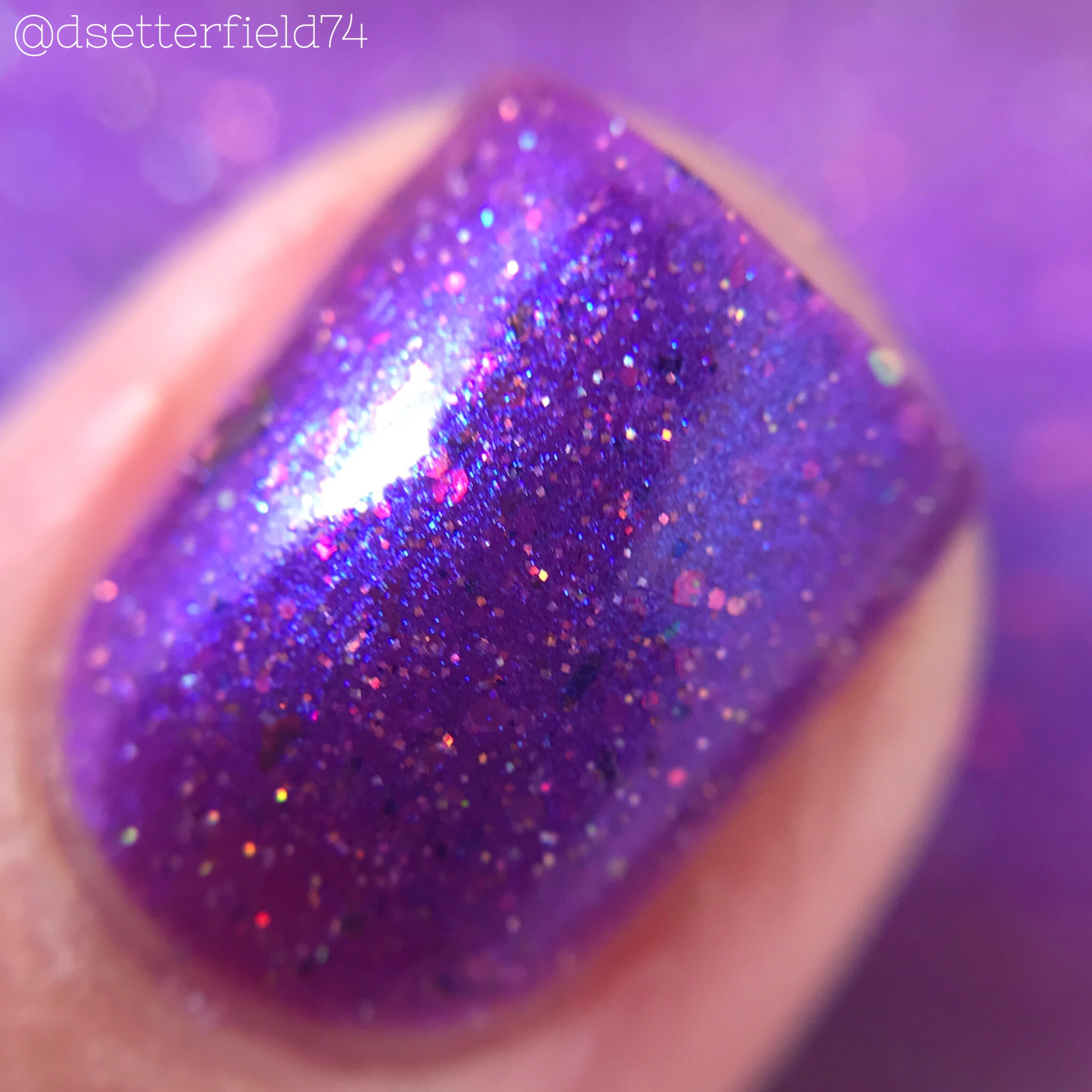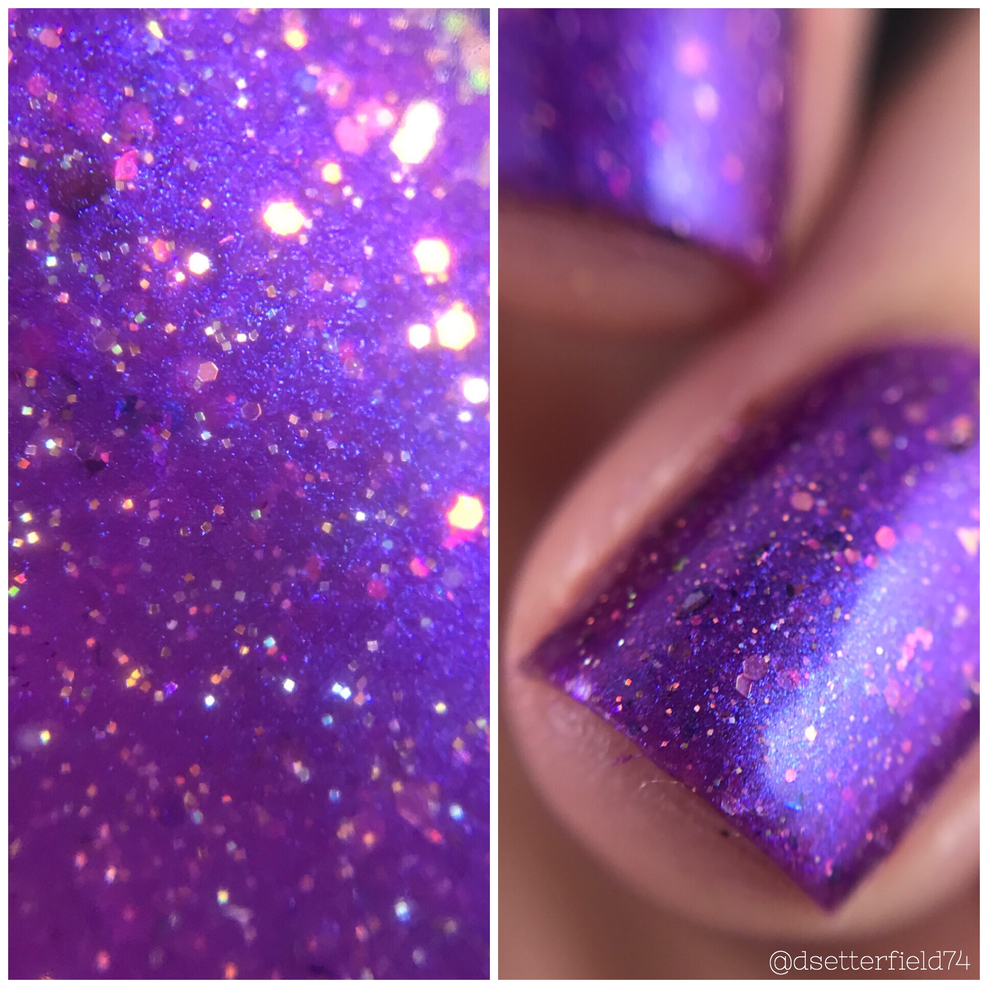 DESCRIPTION: An indigo purple holographic with iridescent purple/blue shifting glitter, aqua/purple/pink shifting flakies, slight blue to pink shift and a rainbow of chameleon chrome shifting flakies