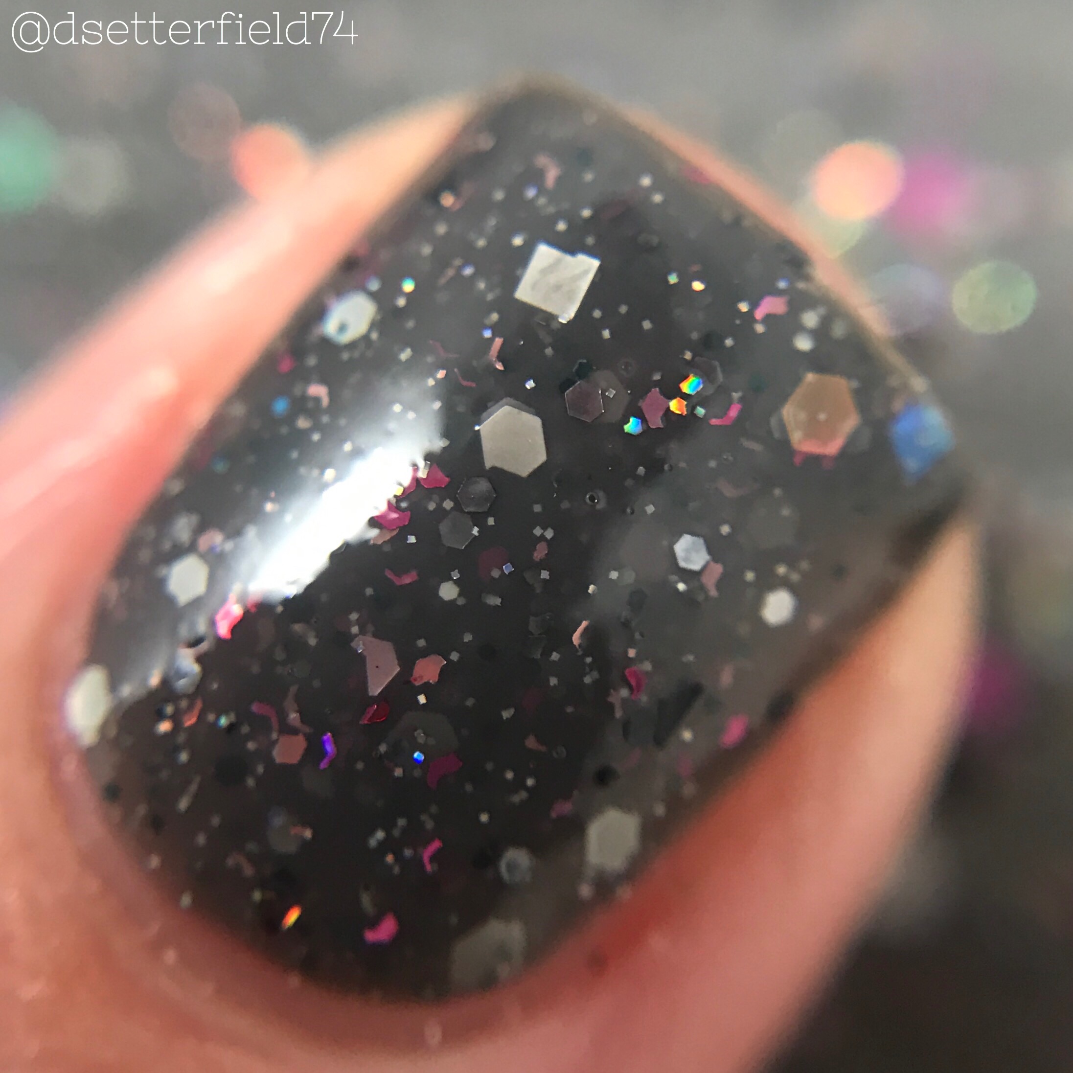 DESCRIPTION: A black jelly base with platinum silver micro flakies and beautiful shifting chameleon glitter