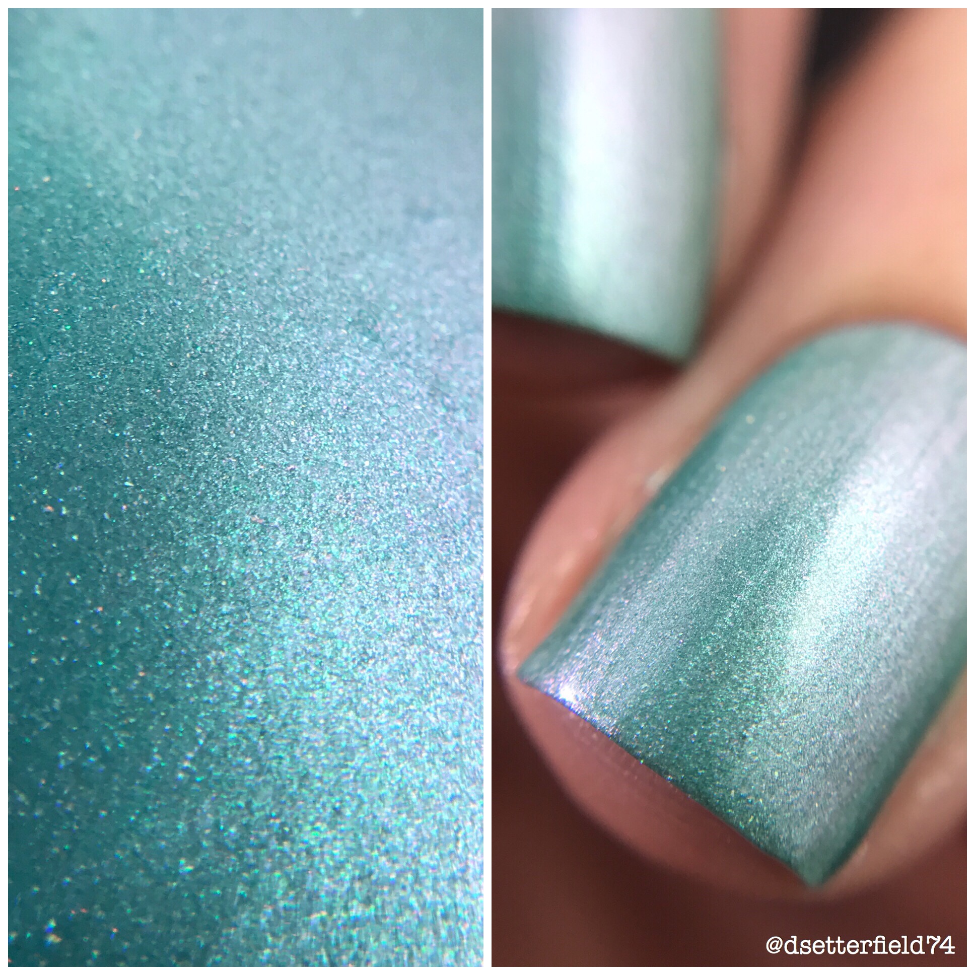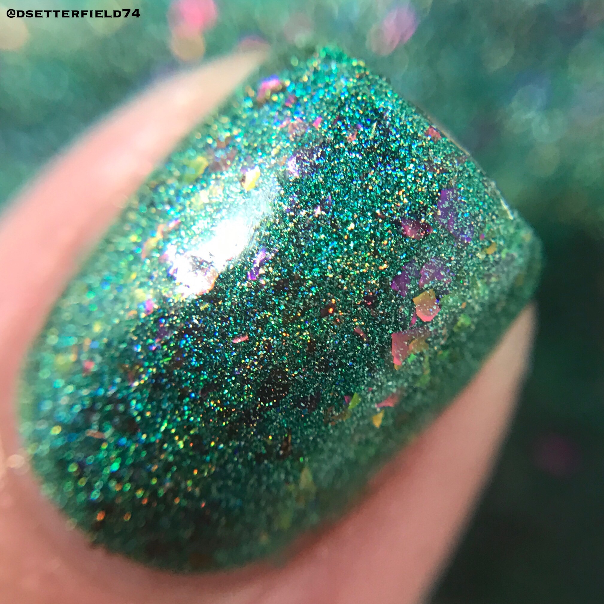DESCRIPTION: A pastel pearlized green base with a beautiful mix of powder and green, gold and silver hexagon glitters