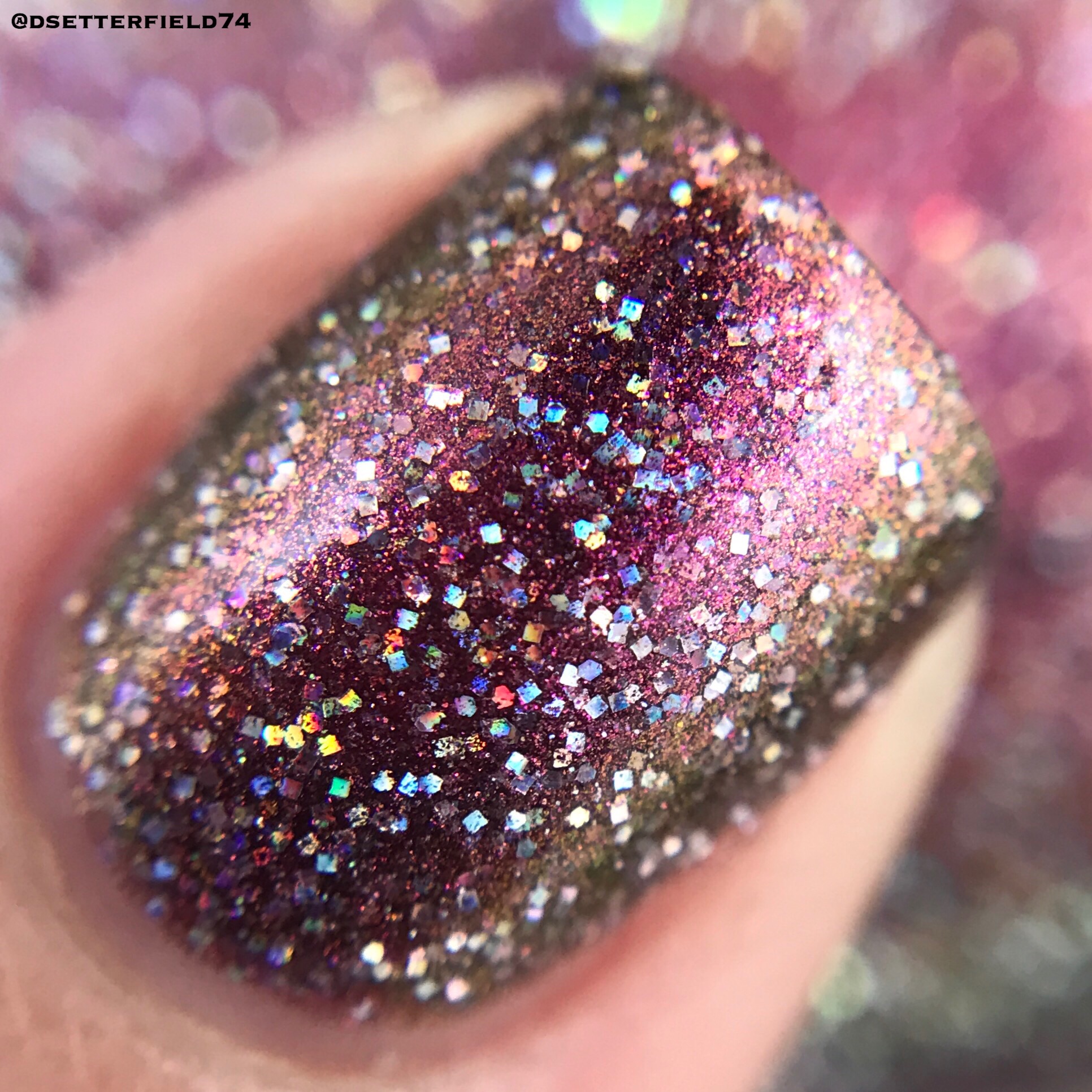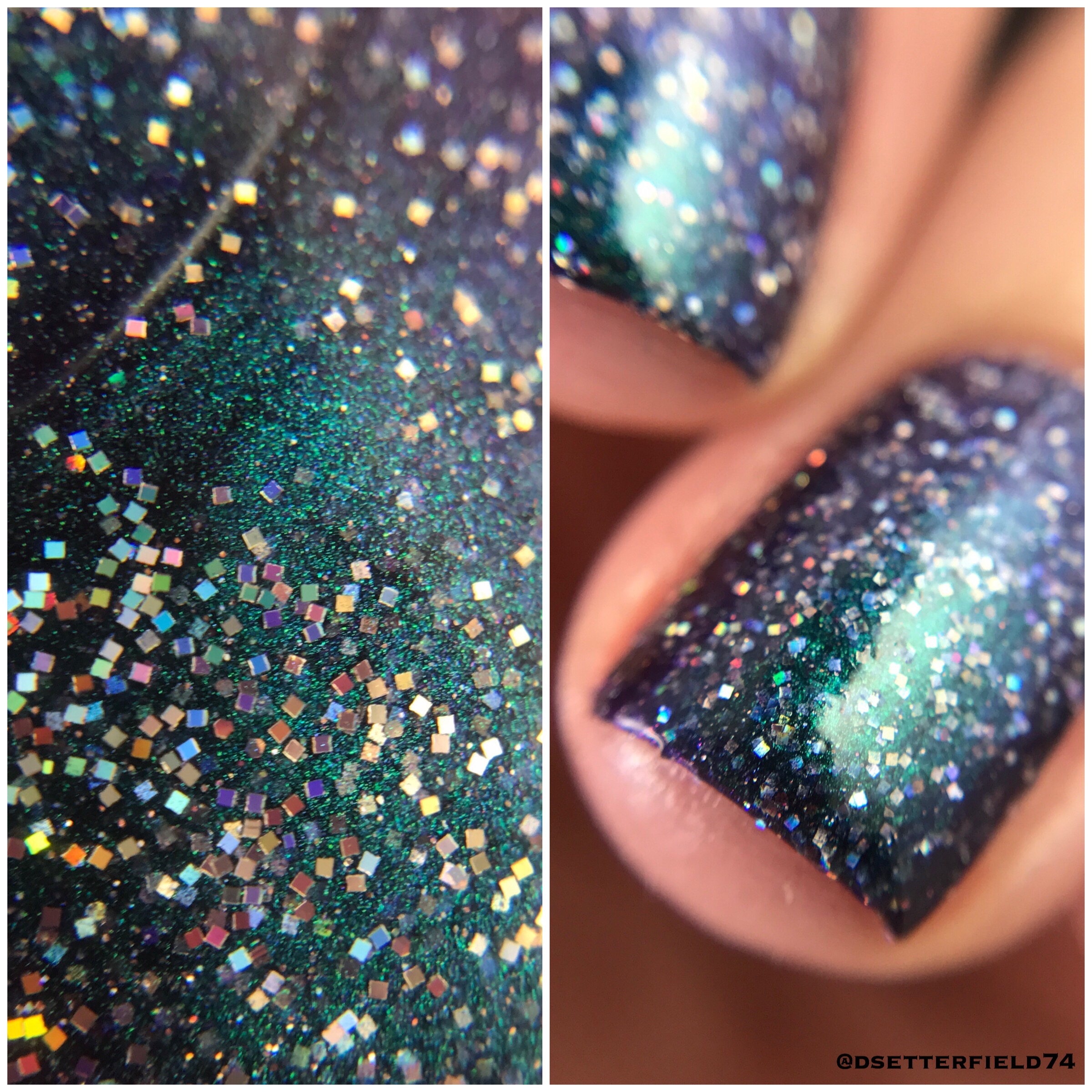 This one is also a super sparkly almost glittery shifter that has the most dramatic shift from green to blue and purple with flashes of red and copper in a slightly tinted jelly base with a linear holographic finish. This one is soooooo much more stunning in person; it is LEGIT a shifty queen. Might be my favorite. Might end up on all the surfaces. Mine AND yours.