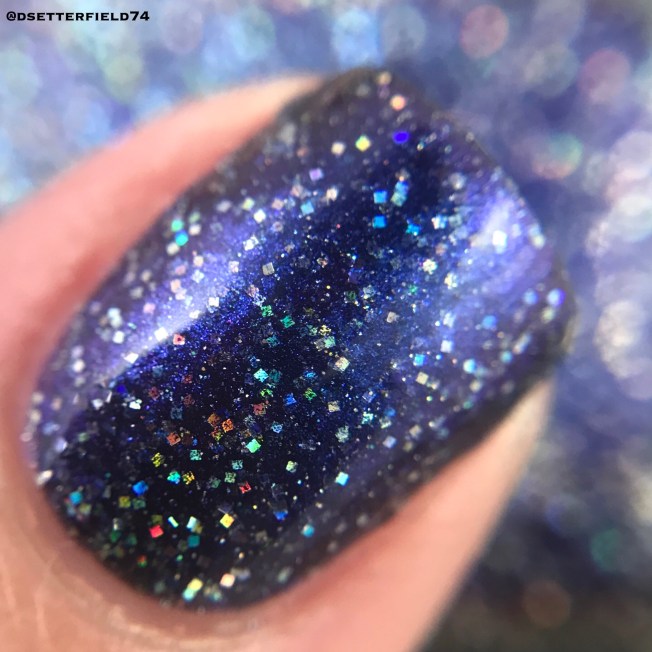 This beauty shifts from blue to purple to reddish in a tinted jelly base with a linear holographic finish. For me, the holo hid the shift a little bit so I think I prefer the straight multichrome version of this one. HOWEVER, I continue eating whole bags of Funyuns (in a room by myself), so my opinion might be moot. You decide for yourself, lovies. I’m just gonna go sit back down now.