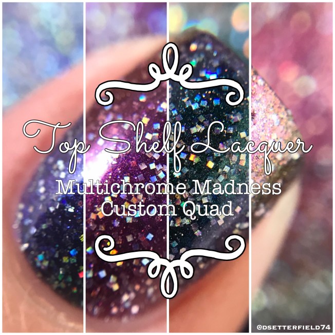Remember back in April when I swatched the Multichrome Madness group customs, and they were four of the most spectacular things you’ve ever seen? Well, these are those same customs but without the cute square glitters. And I tell you what: I stinkin’ LOOOOOOOVE them. Plain multichromes? Heart eyes times a billion.